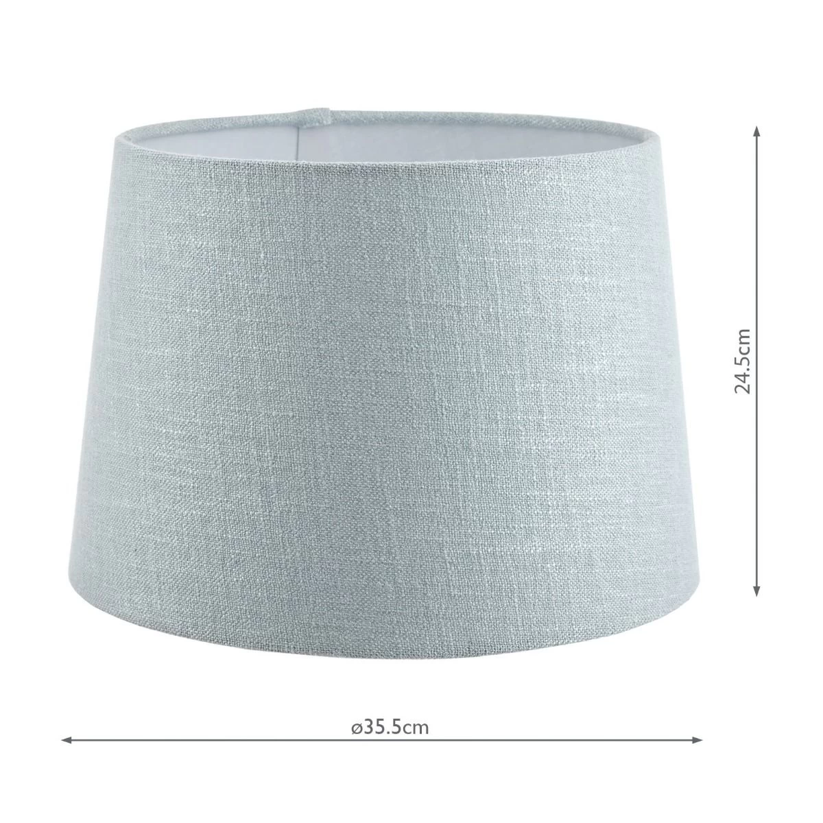 The Laura Ashley Bacall lightshade has a classic, slightly angled, Empire form. The diameter of this size is 35cm. Here we finish it in slubbed linen in duck egg blue.