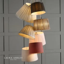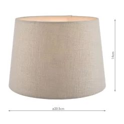 The Laura Ashley Bacall lightshade has a classic, slightly angled, Empire drum form. The diameter of this size is 20cm. Here we finish it in slubbed linen in silver.
