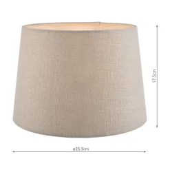The Laura Ashley Bacall lightshade has a classic, slightly angled, Empire drum form. The diameter of this size is 25cm. Here we finish it in slubbed linen in silver.