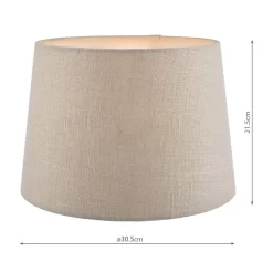 The Laura Ashley Bacall lightshade has a classic, slightly angled, Empire drum form. The diameter of this size is 30cm. Here we finish it in slubbed linen in silver.