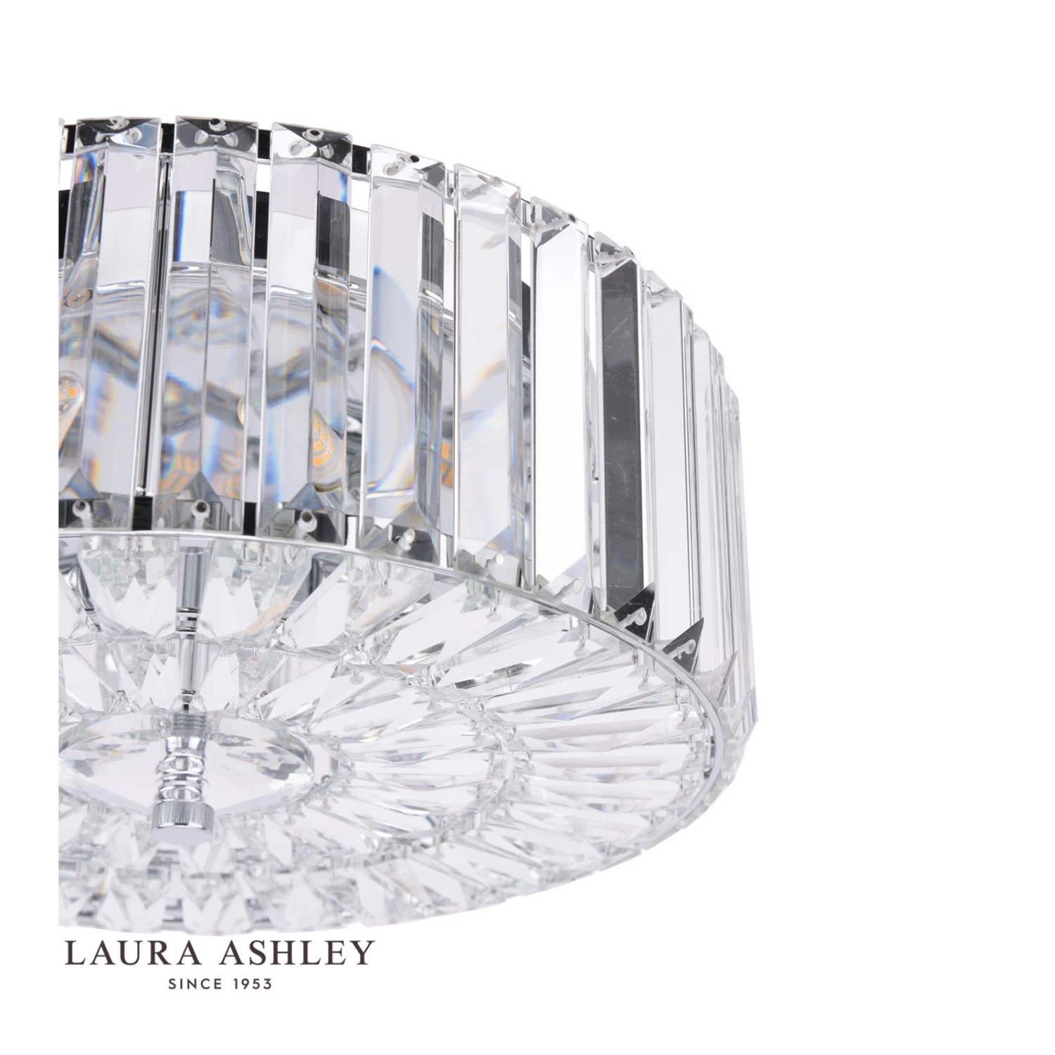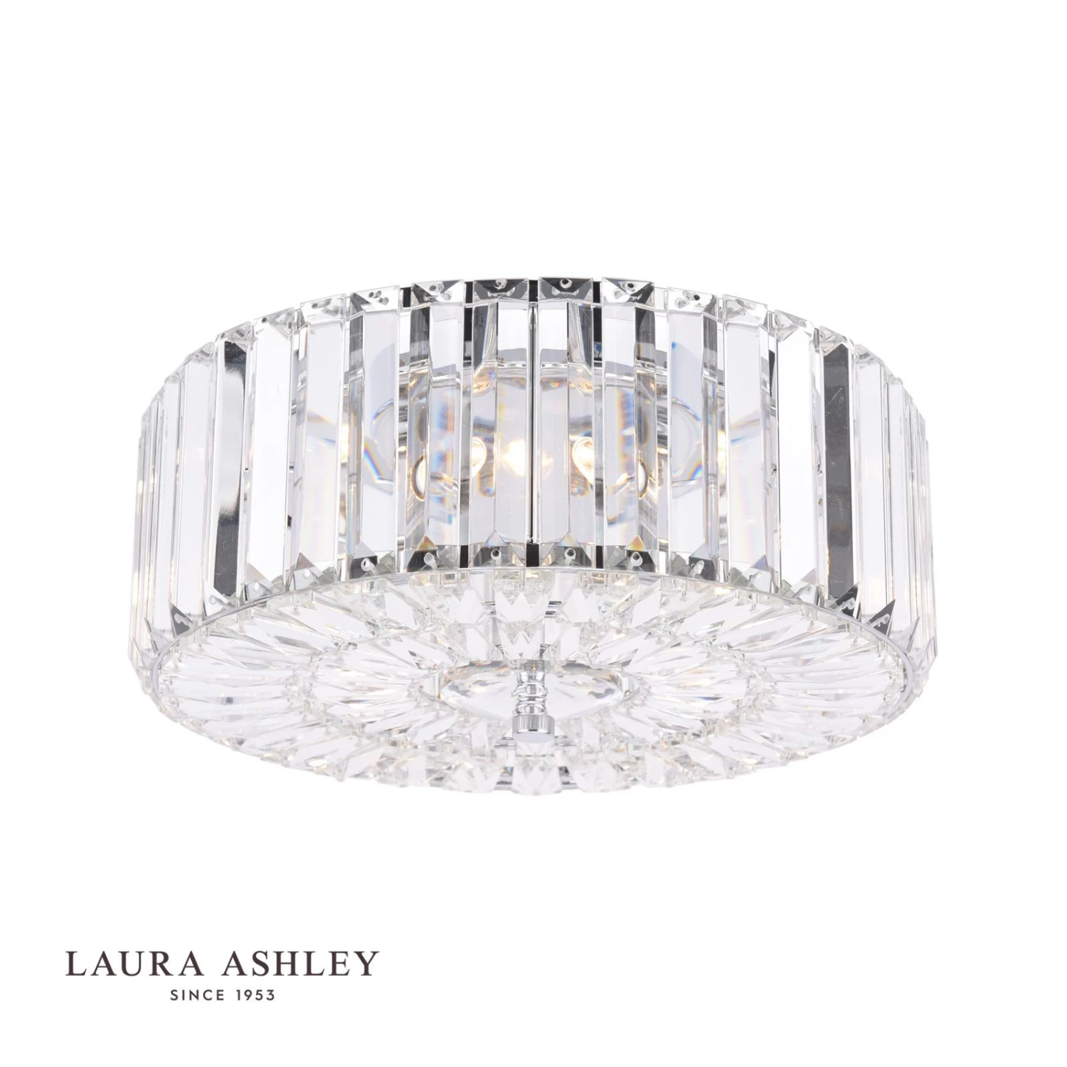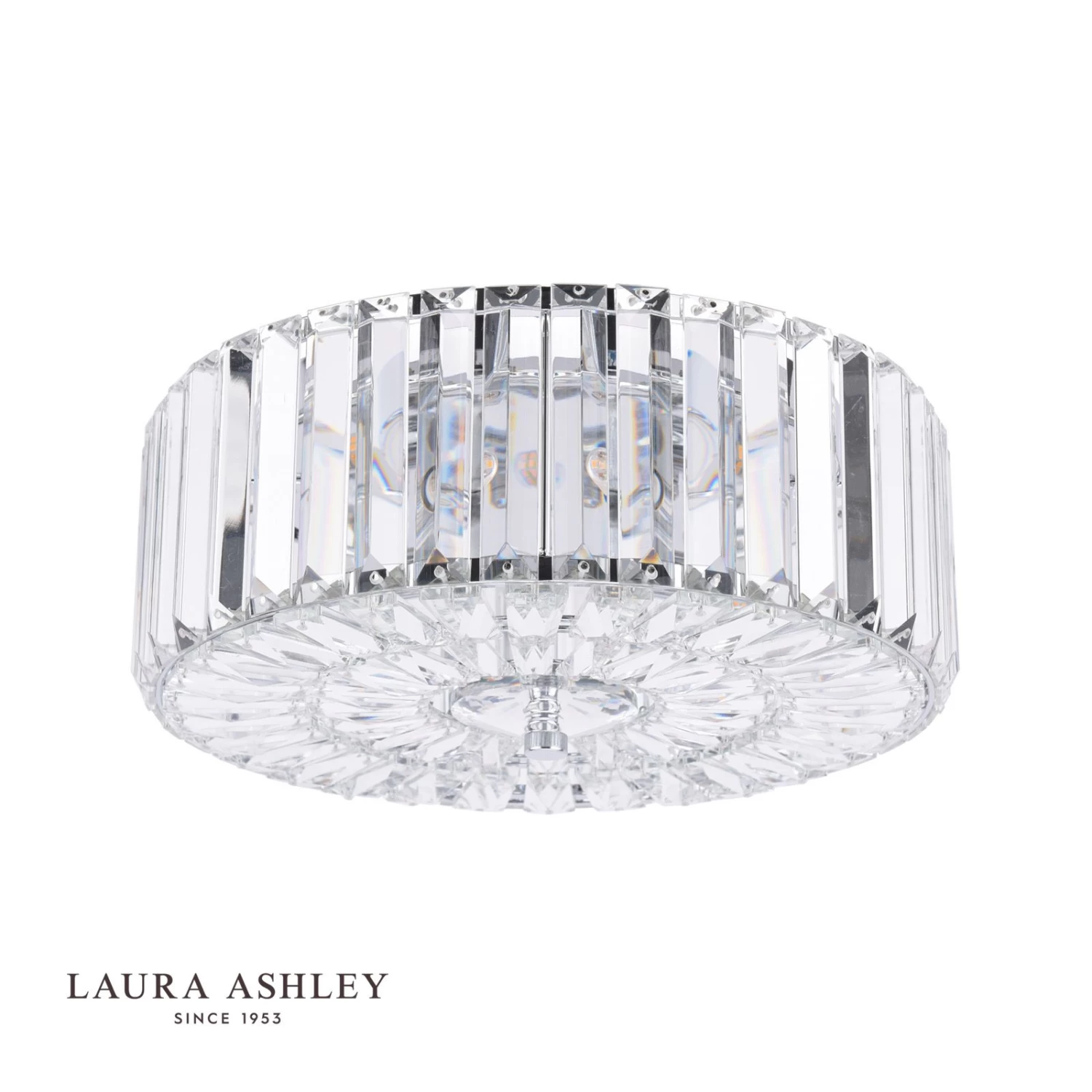 The glamorous Fernhurst ceiling light by Laura Ashley features bevelled glass rods, all suspended from a circular frame in bright polished chrome. Full flush fittings attach directly to the ceiling so are suitable for low ceilings and small rooms, plus they have a neat finish with no visible cables. Bulbs not included; takes 3 x 33W Max G9.