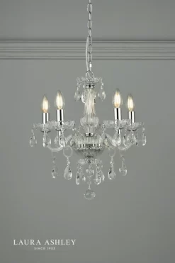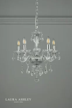 If you want to create all the glamour of a French chandelier, choose the Harriet ceiling light from Laura Ashley? Positively dripping with light-refracting faceted crystal almonds, this large glass pendant light has 5 lights held on curved crystal arms. This armed ceiling fitting has polished chrome fittings, and will be right at home with both contemporary and more traditionally décor.