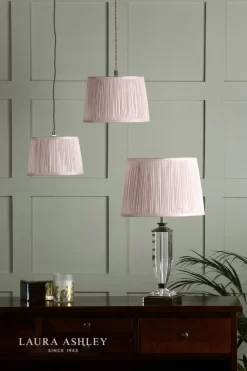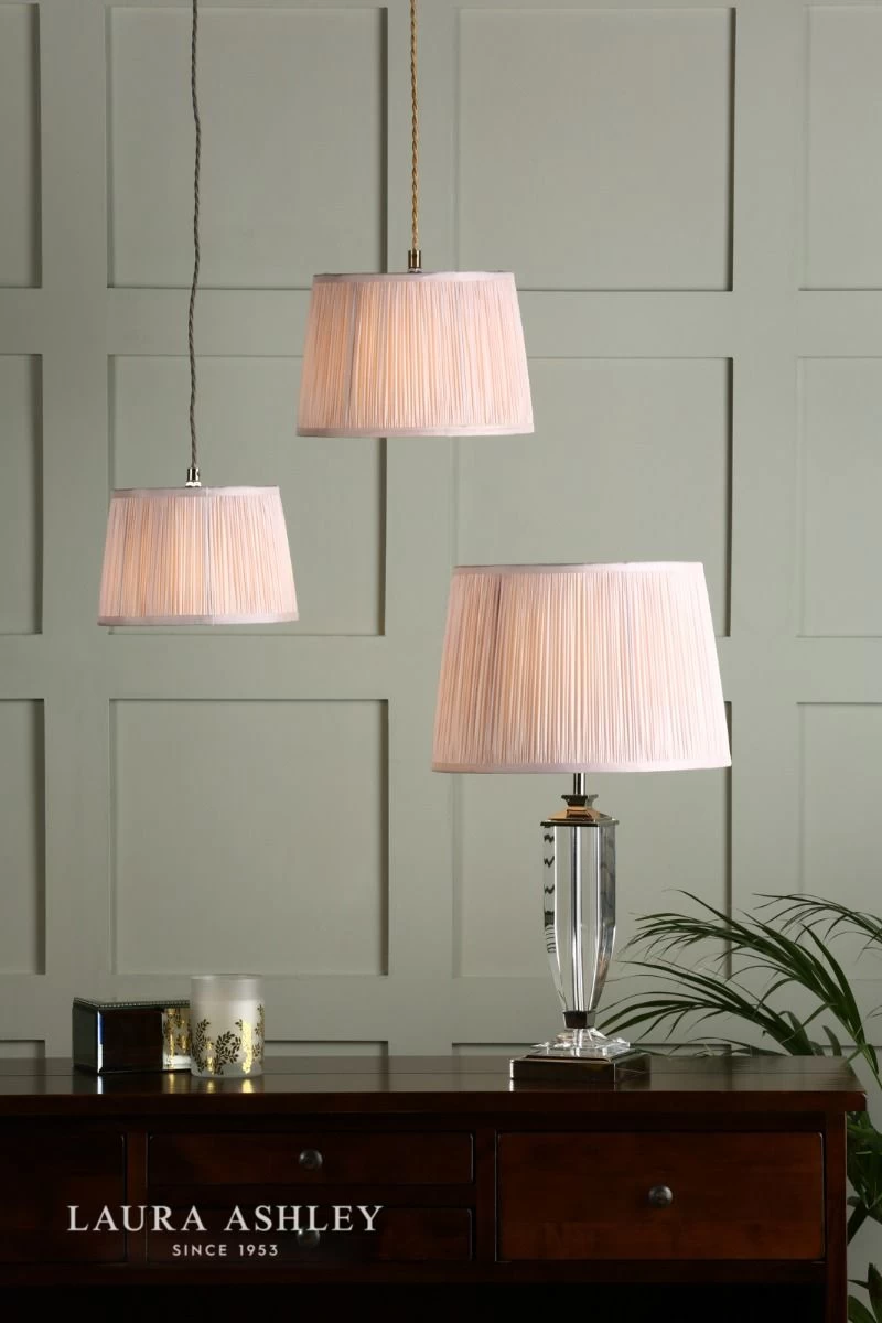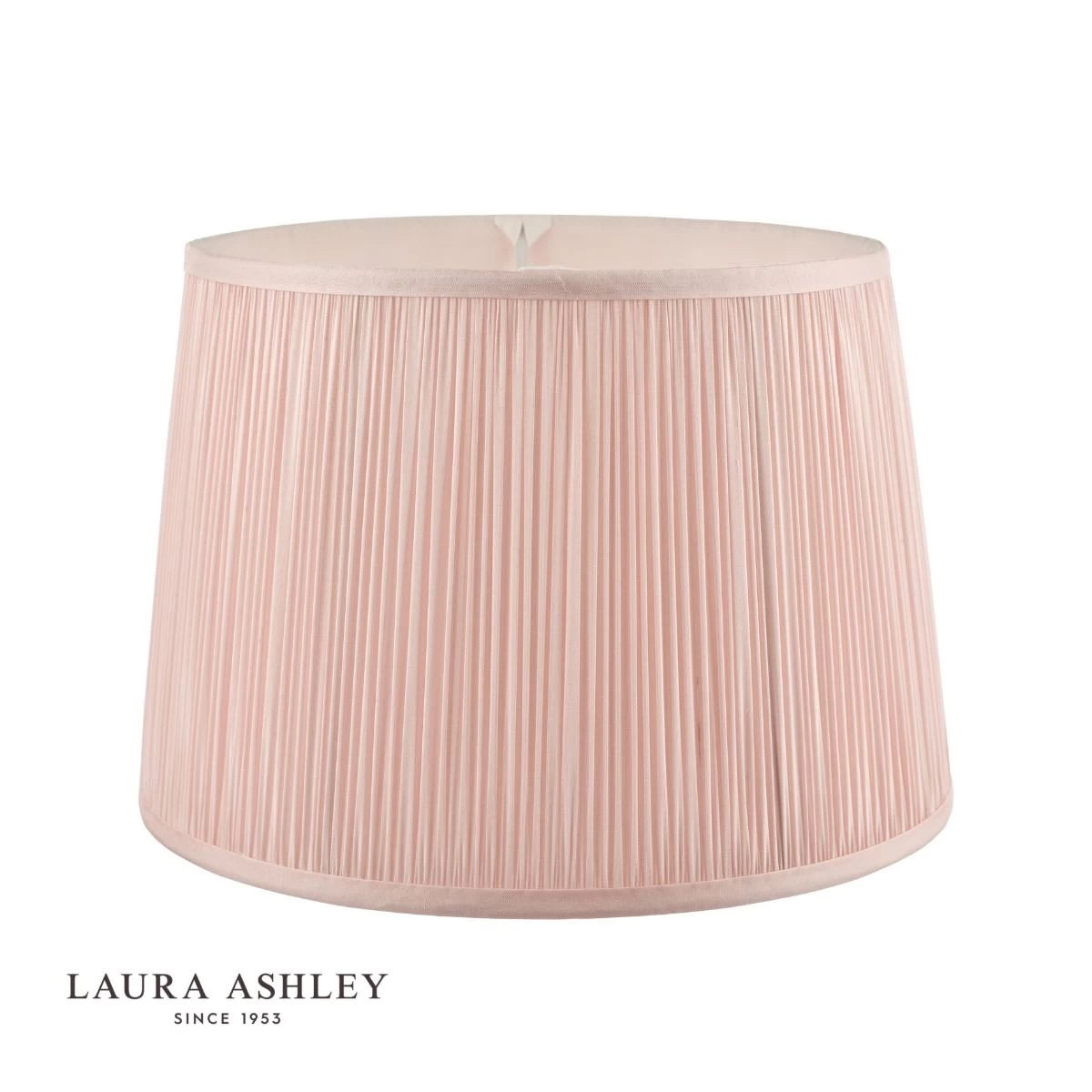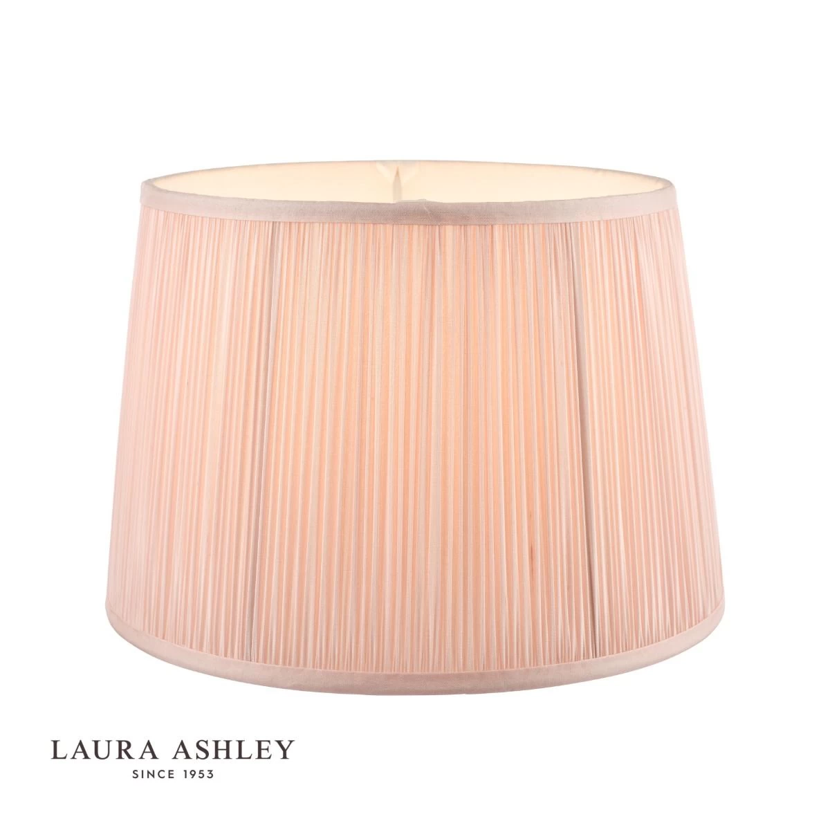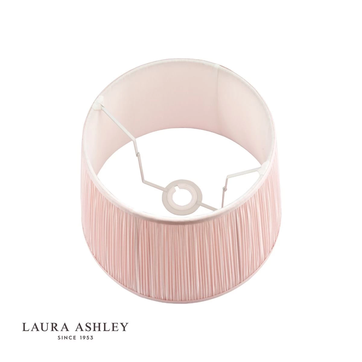 The Laura Ashley Hemsley lightshade has a classic, slightly angled, Empire drum form. The diameter of this size is 20cm. Here we finish it in an elegant, pleated smooth silk in pink.