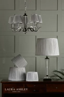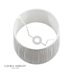 The Laura Ashley Hemsley lightshade has a classic, slightly angled, Empire drum form. The diameter of this size is 30cm. Here we finish it in an elegant, pleated smooth silk in silver.