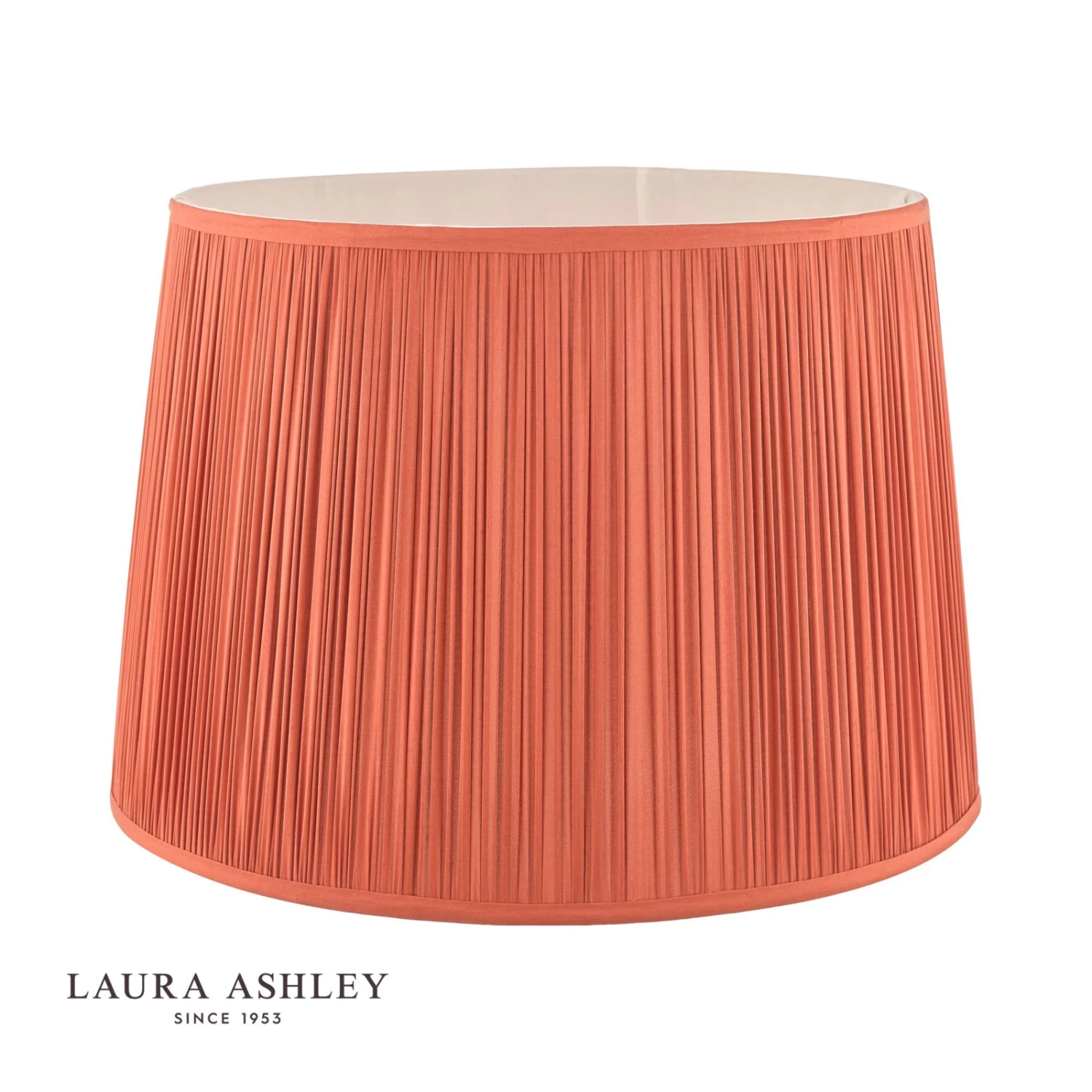 The Laura Ashley Hemsley lightshade has a classic Empire tapered drum form in an elegant, pleated smooth silk. Fabric shade only; fitting not included. Suitable for E27 fittings; comes with a reducer ring to fit traditional B22 fittings.