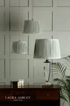 The Laura Ashley Hemsley lightshade has a classic Empire tapered drum form in an elegant, pleated smooth silk. Now also available in warm colours for cooler months – why not ring the changes with a quick switch of shades each season?