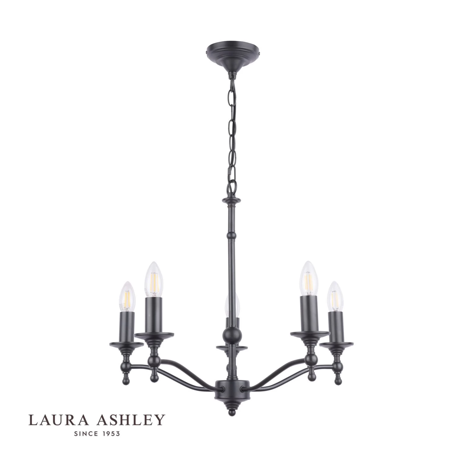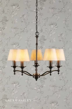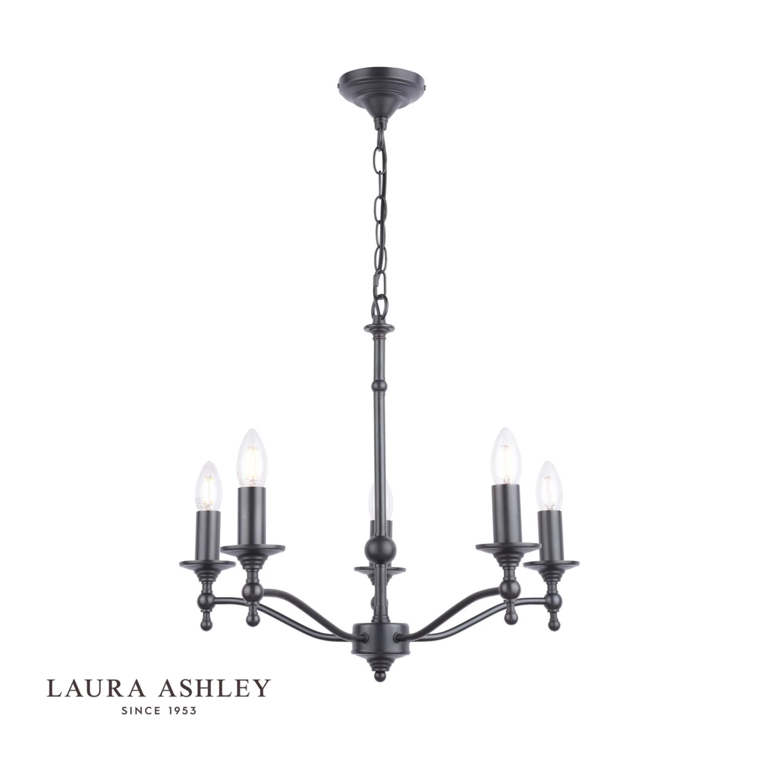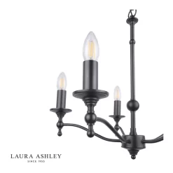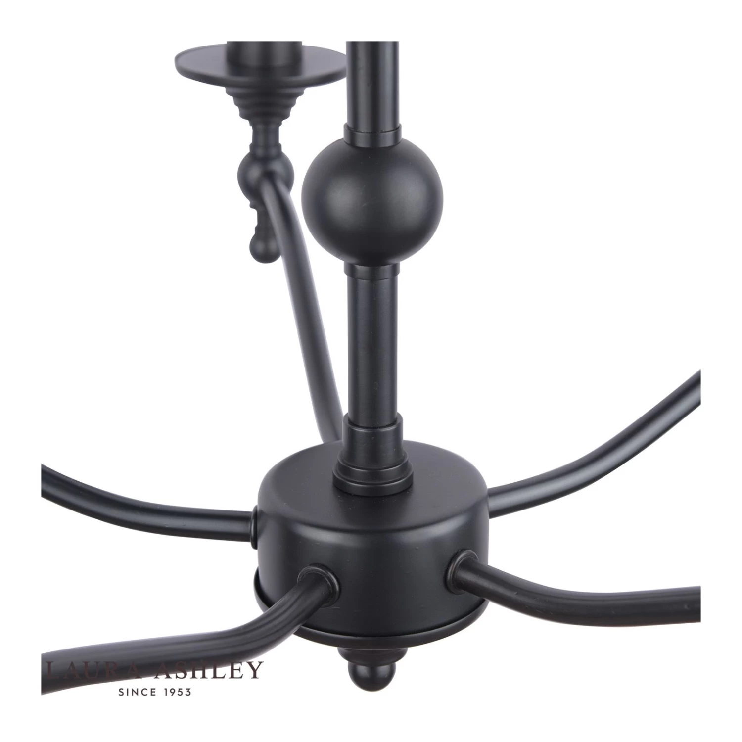 The Ludchurch 5 Light Chandelier by Laura Ashley is a timeless classic candelabra style with a luxury black plated finish. You can adjust the drop to suit the height of your ceiling. Add one of our 5″ candle clip shades for a softer look. Bulbs not included; takes 5 x 40W Max SES.