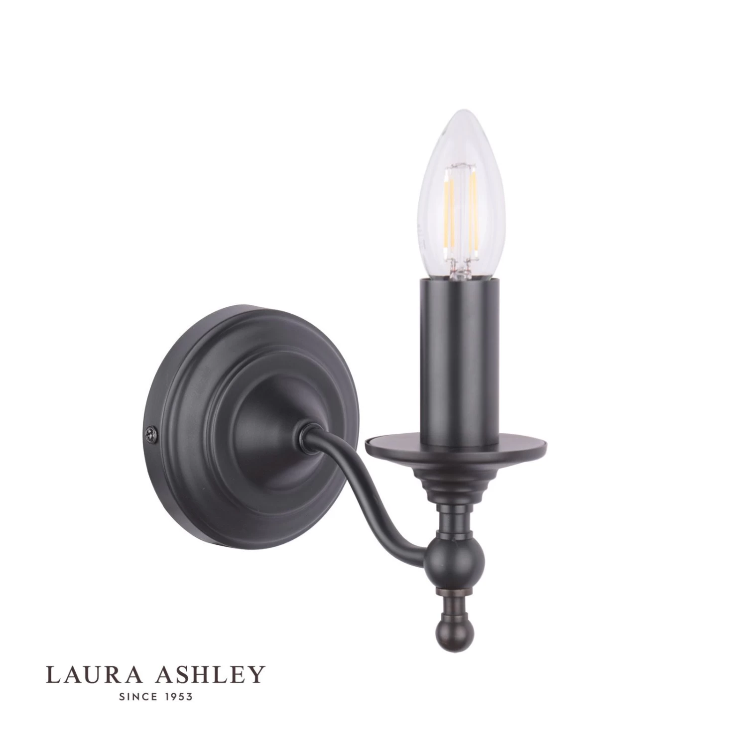 The Ludchurch WallLight by Laura Ashley is a timeless classically styled candlestick product.This is a contemporary take on an English heritage style in a sophisticated plated black finish.Laura Ashley’s Ludchurch single wall light is a versatile addition to your home. Pair with out 14cm Bray shade.Bulb not included; takes 1 x 40W max SES Candle