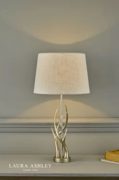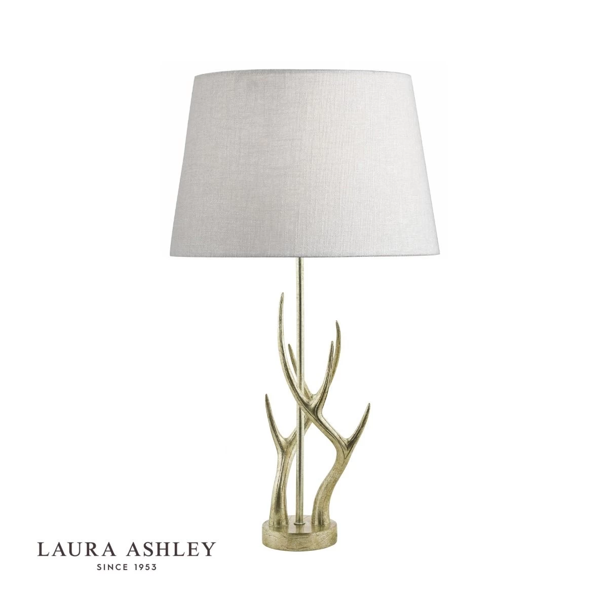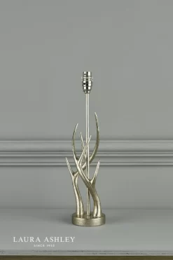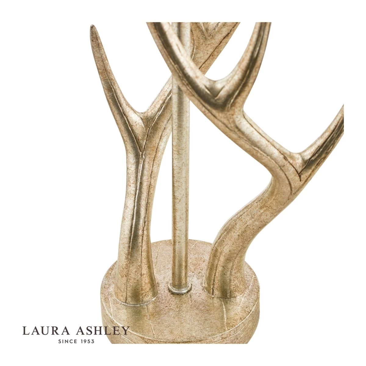 Make a statement with the Laura Ashley Mulroy resin table lamp. Featuring an antler design mounted on a textured base, this contemporary interpretation of a nostalgic style boasts a shimmering antique champagne look, finished by hand for a touch of luxury.
