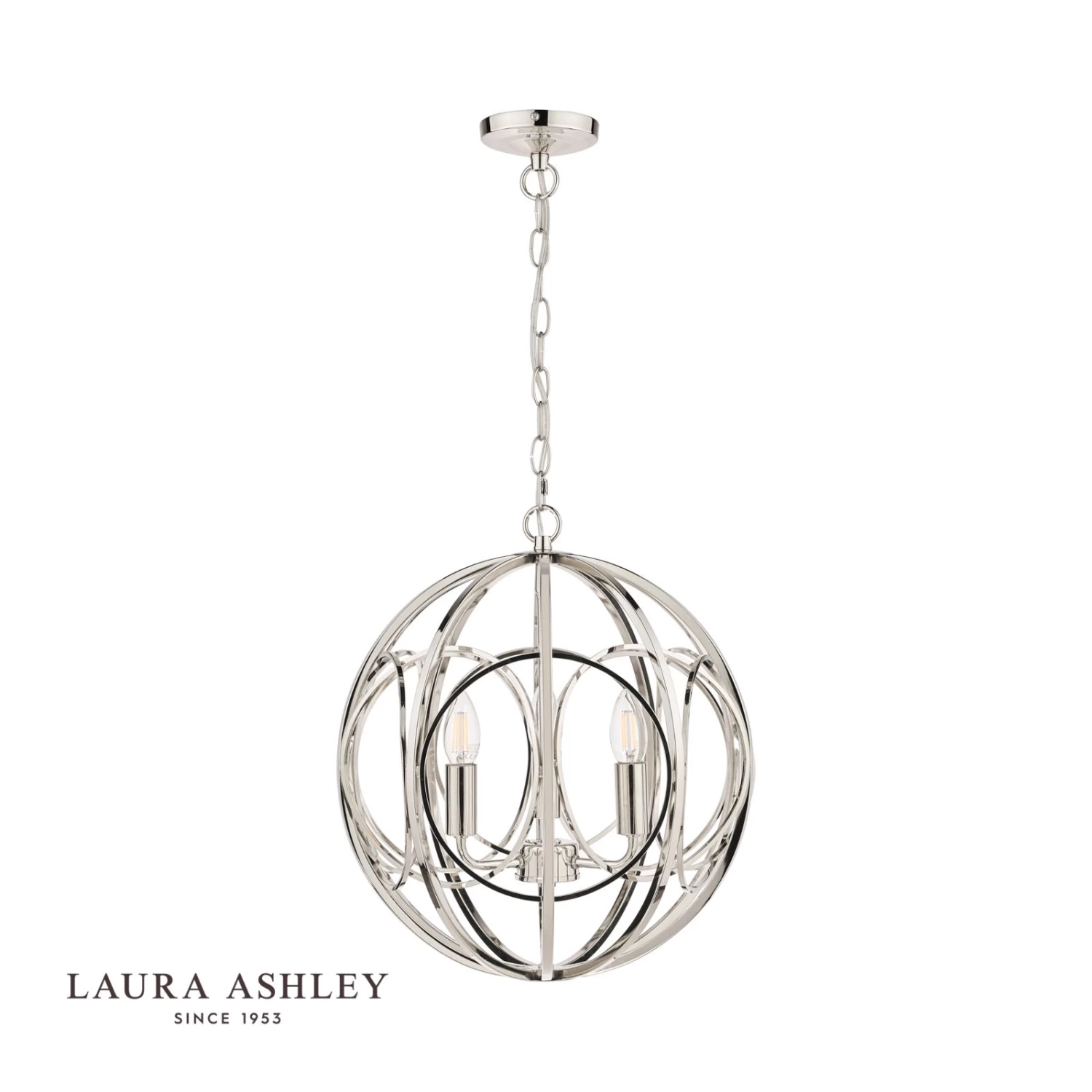 The utterly timeless Orbital pendant light from Laura Ashley is a modern take on a traditional chandelier. Interlocking circles in a sophisticated polished nickel form a stunning globe light. It lends itself to the living room, dining area or hallway, and is especially suited to a higher ceiling as it is height adjustable on installation (55–150cm).