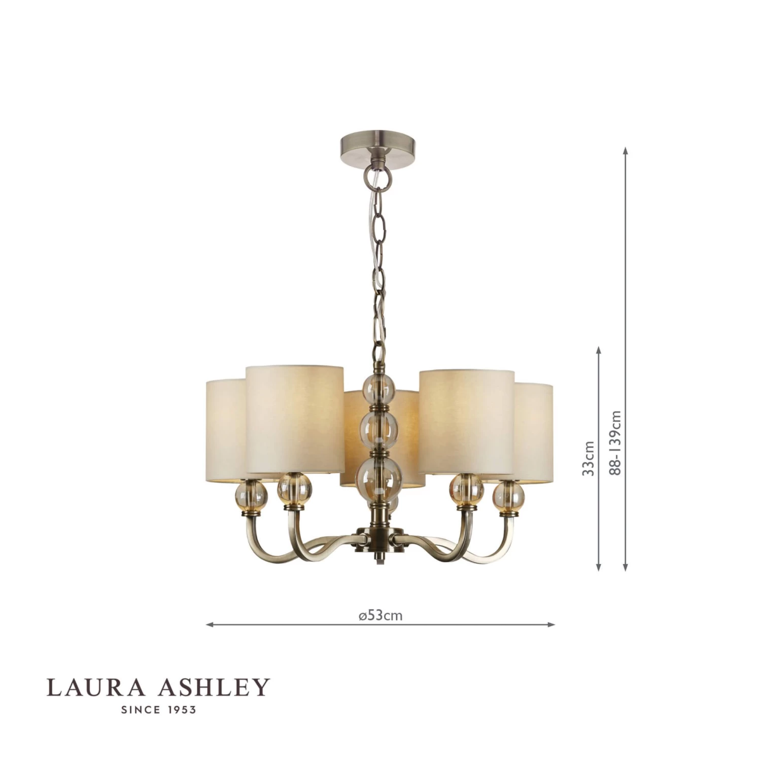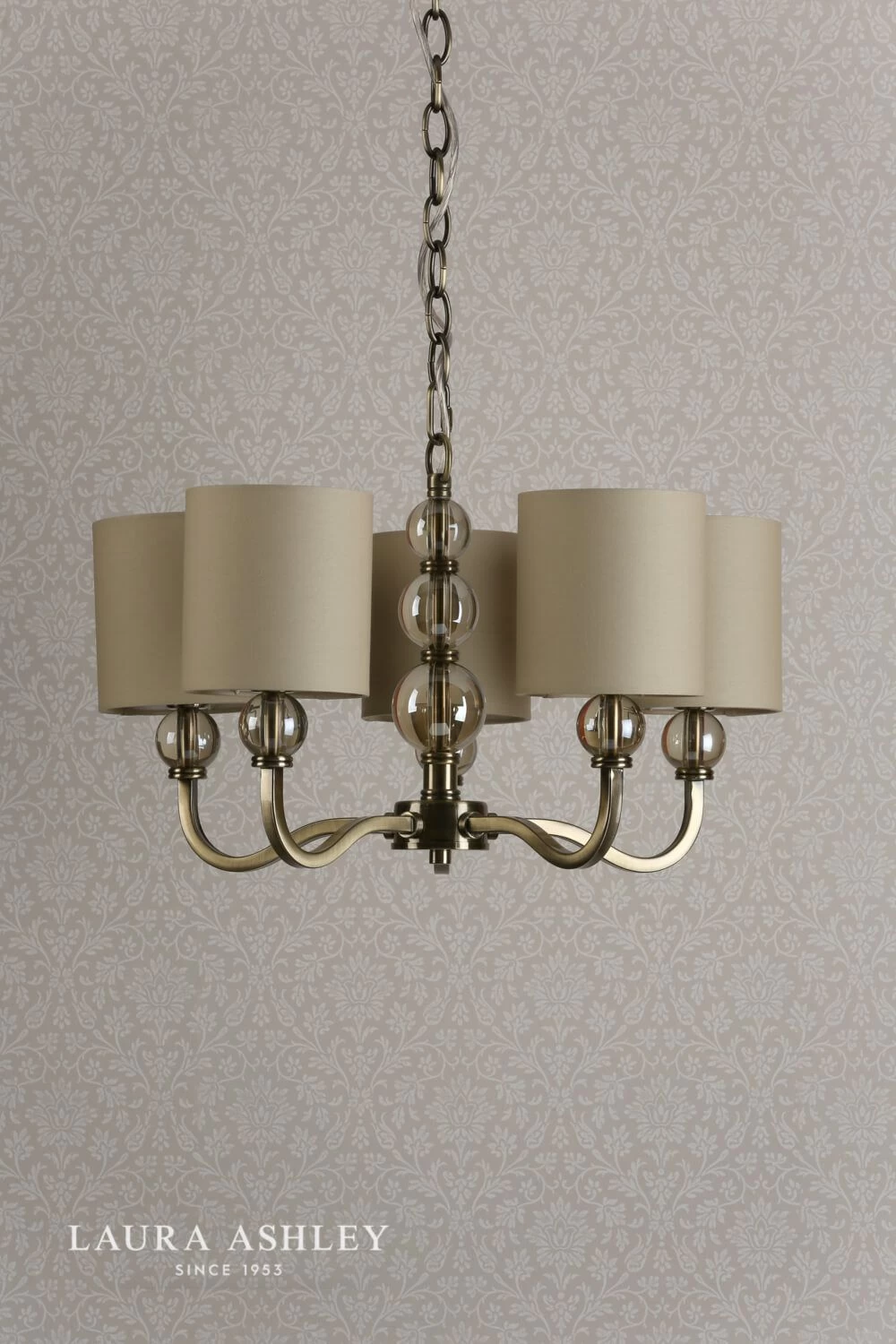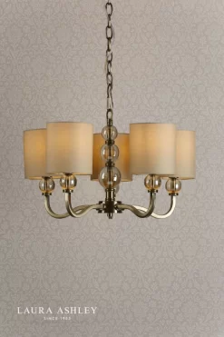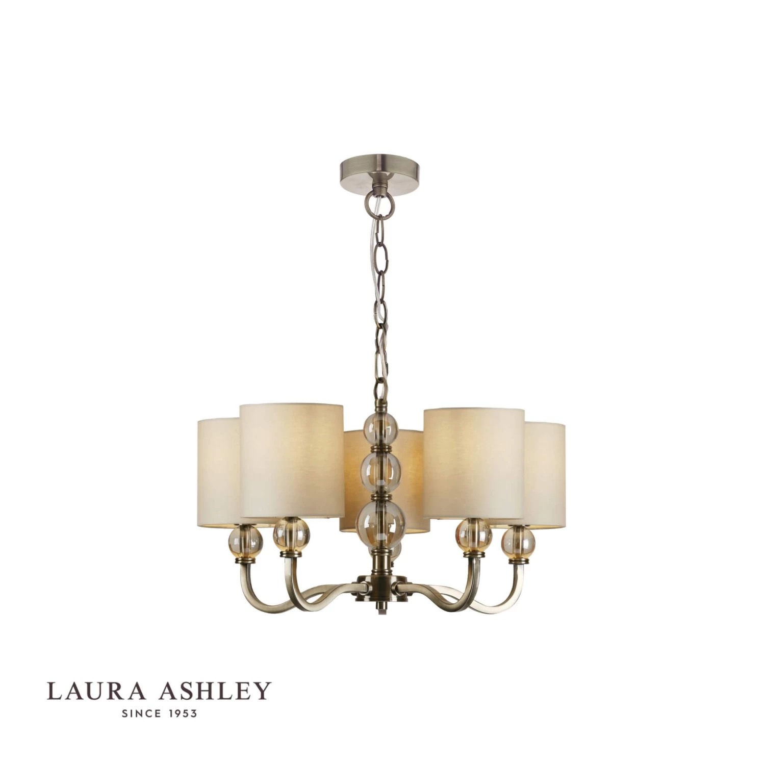 Laura Ashley Selby 5lt Chandelier Antique Brass Amber Glass With Shades