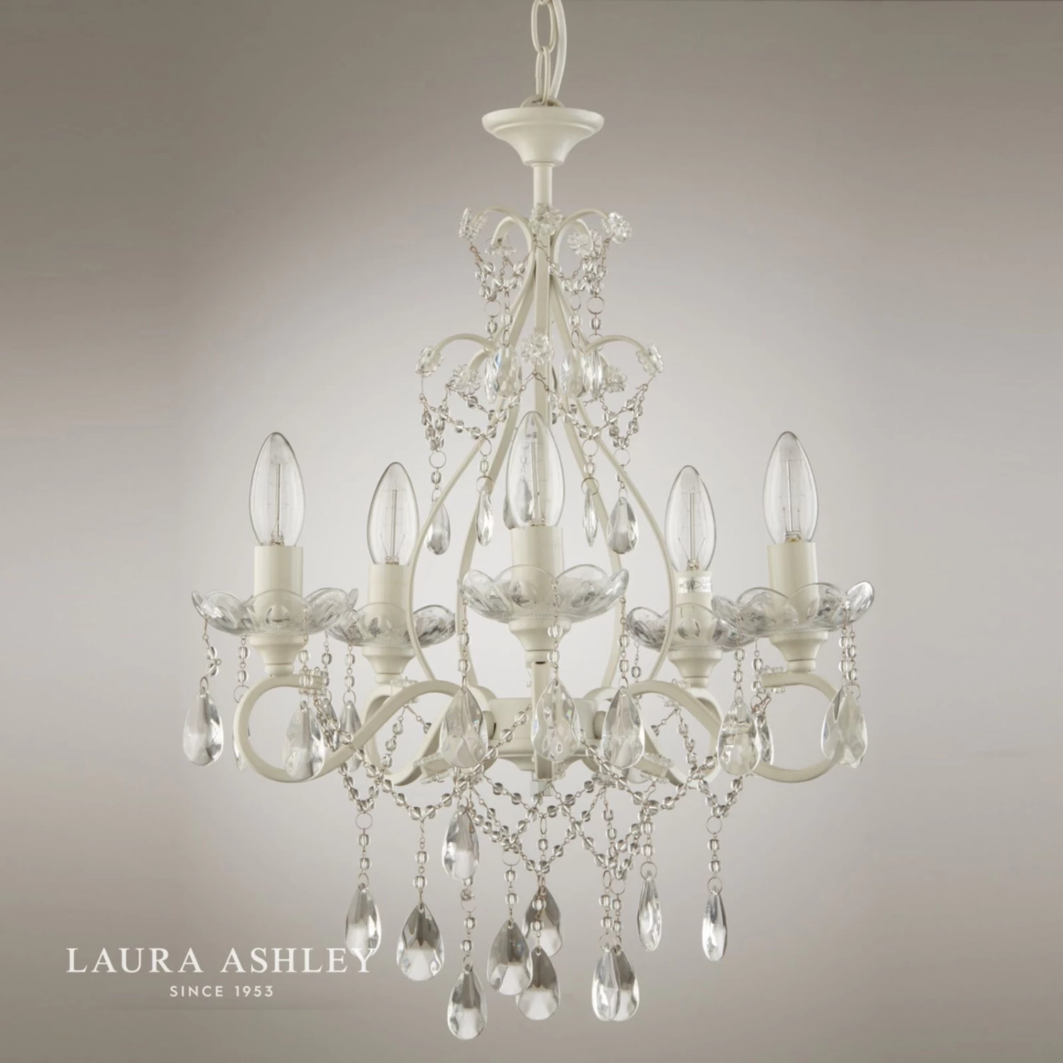 If you want to create all the glamour of a Versailles chandelier in a far more bijou space, why not opt for the Shamley ceiling light from Laura Ashley? Positively dripping with light-refracting crystal teardrops and beads, this metal pendant light has 5 lights held on curved arms. The metalwork is painted in a matt white finish, so this petite chandelier will be right at home with both contemporary and more traditionally décor.