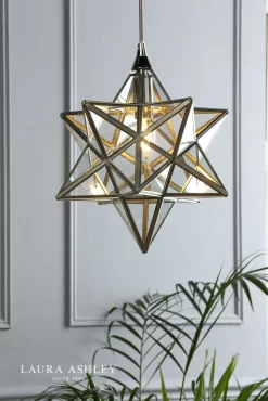 An instantly recognisable design, always on trend, the Star pendant from Laura Ashley in an indulgent polished silver finish. With multiple panes of glass joined by the modern equivalent of leading, this charming design is ideal for adding character to a room.