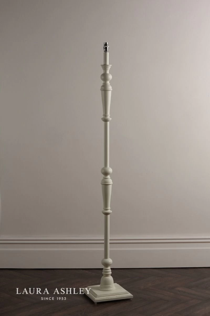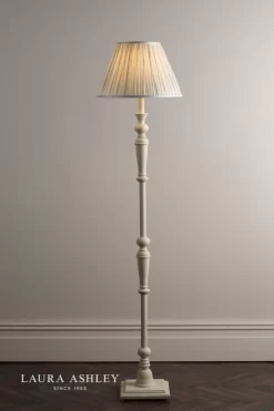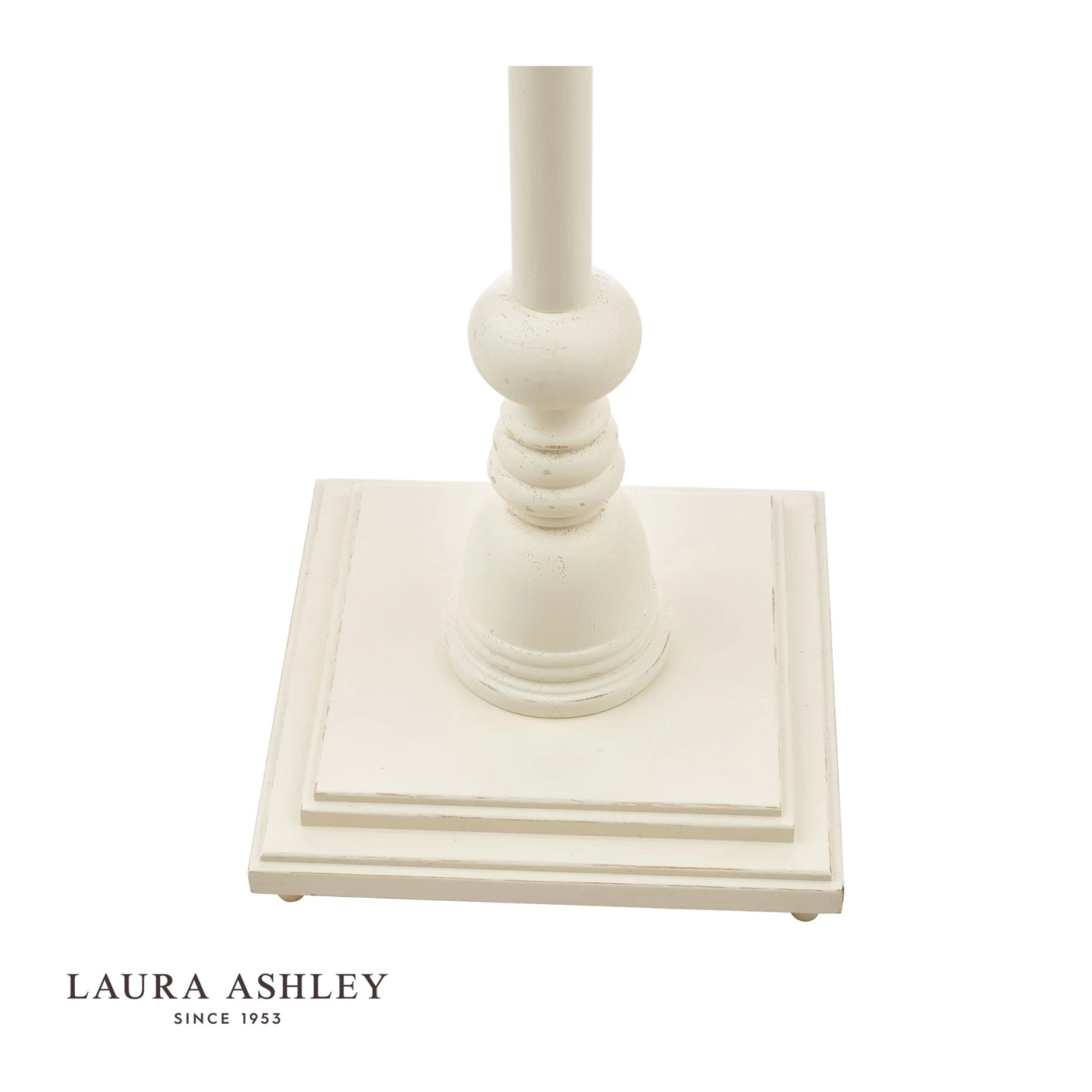 A traditional candlestick style floor light, the hand-finished wooden Tate column floor lamp from Laura Ashley will stand proud in your living area. Position by a comfortable chair for reading. Made of turned wood, with a square base, it is painted in an off-white colour with a distressed effect.