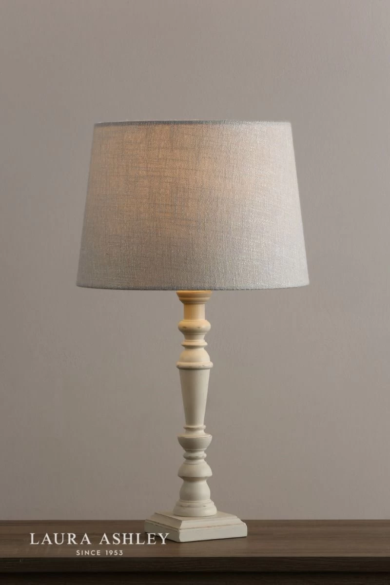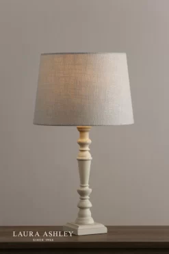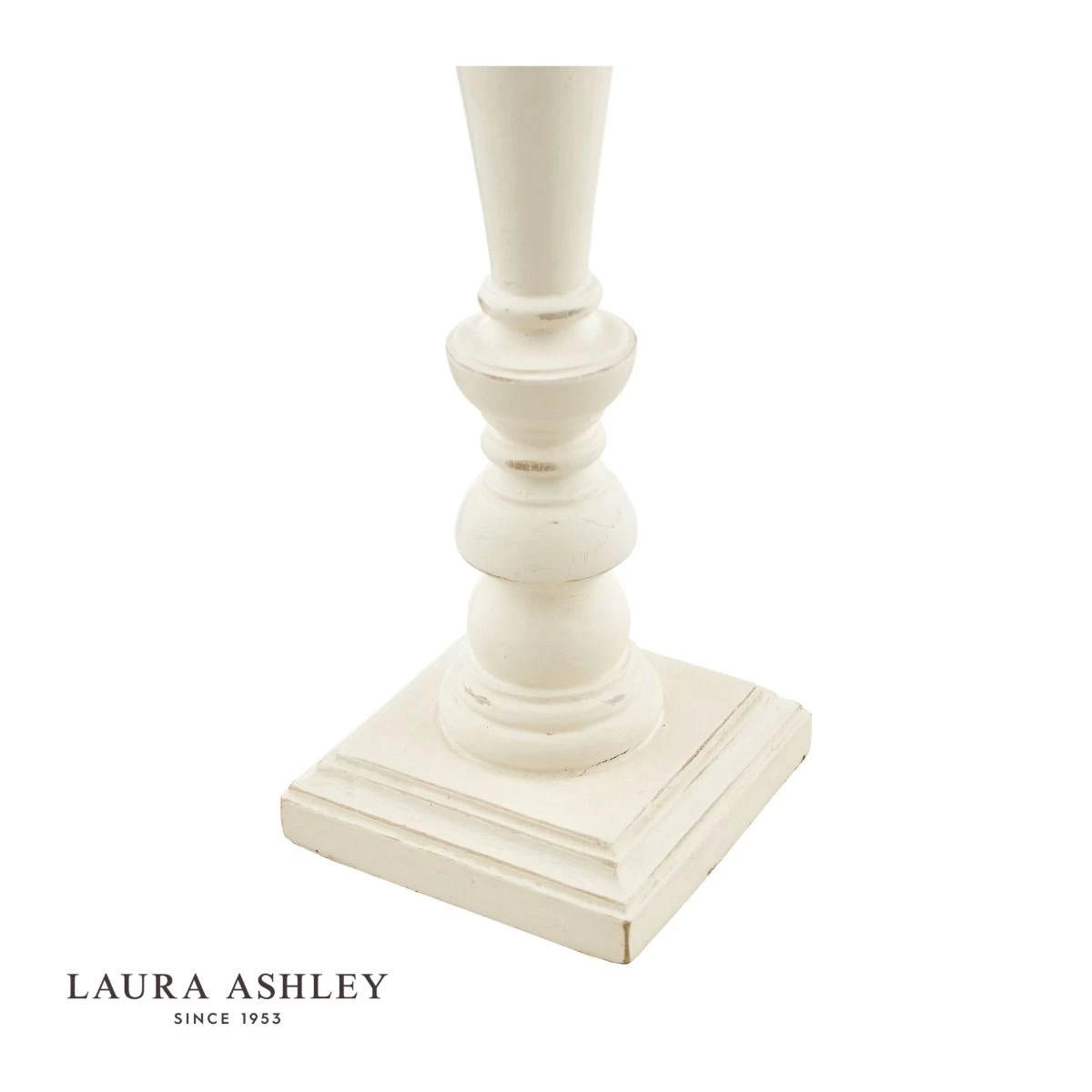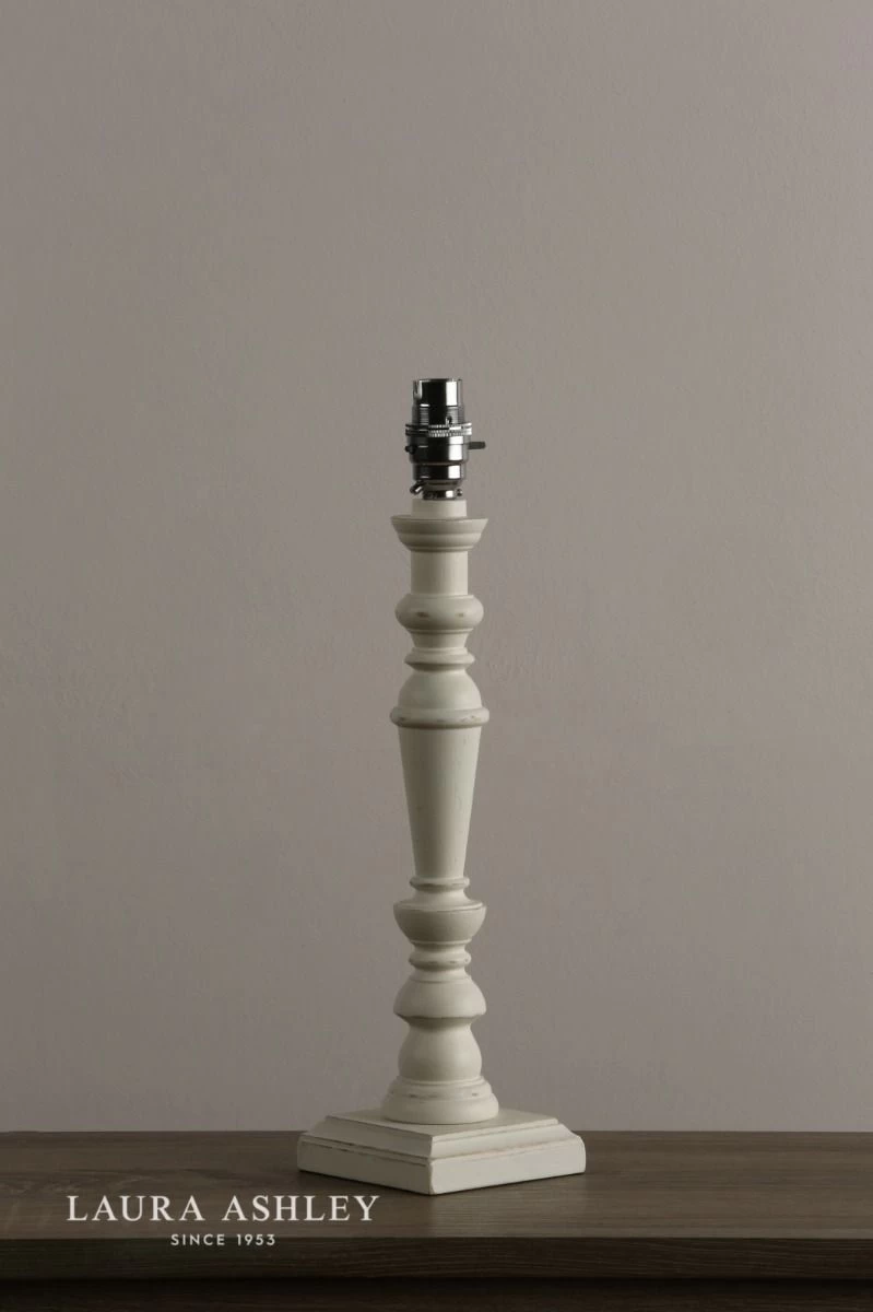 A traditional candlestick style floor light, the hand-finished wooden Tate column table lamp from Laura Ashley will stand proud in your living area. Position by a comfortable chair for reading. Made of turned wood, with a square base, it is painted in an off-white colour with a distressed effect.