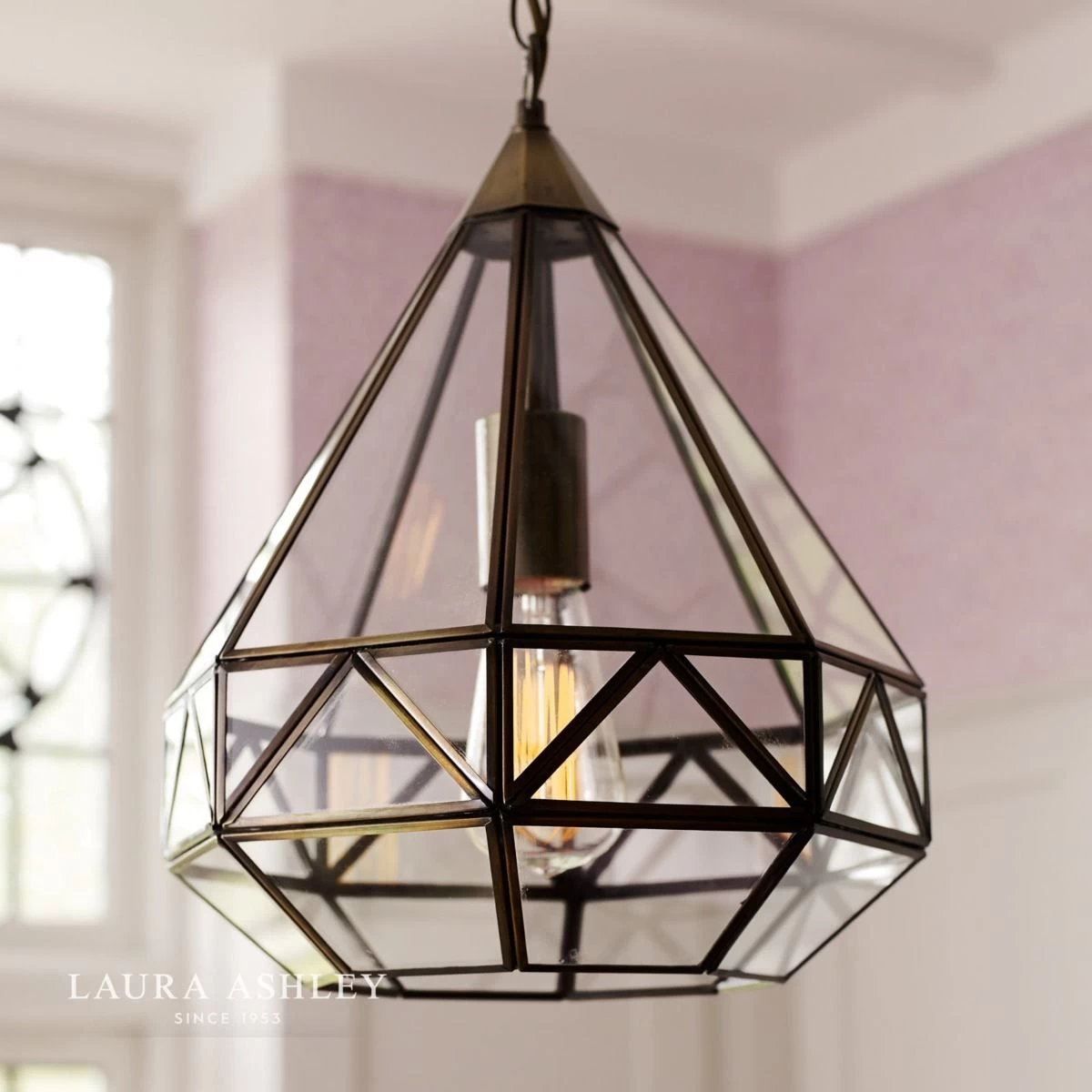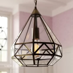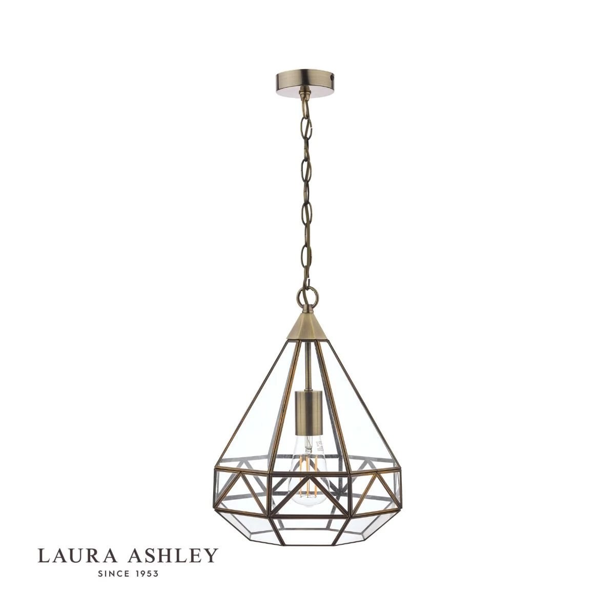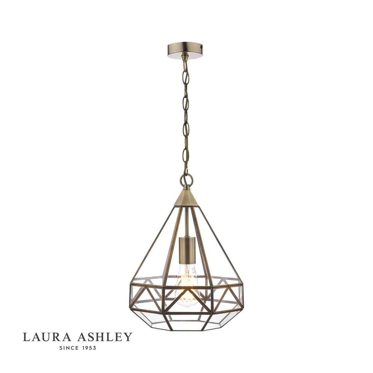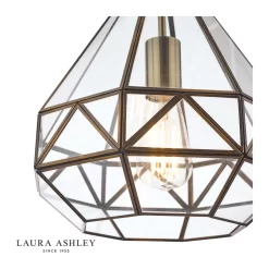 A thoroughly modern, lantern-style ceiling pendant, the Zaria from Laura Ashley features a geometric glass frame with a timeless, warm antique brass finish, allowing it to slip seamlessly into any number of interior schemes.