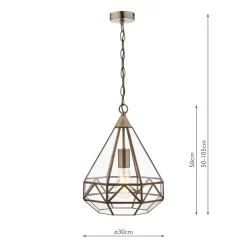 This ceiling pendant fitting has a matching finish ceiling rose and hanging chain plus a coordinating gold cable. Height is adjustable at the point of installation (40–105cm).