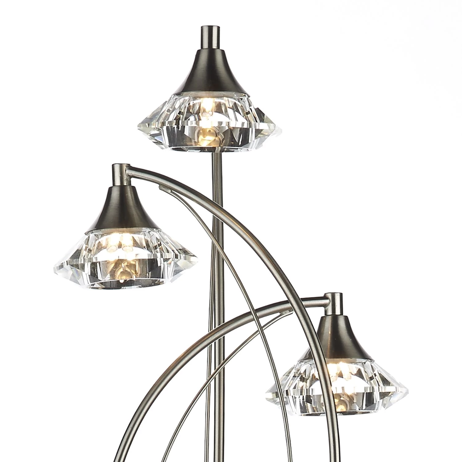 LUTHER 3lt Floor Lamp in satin chrome with faceted crystal glass shades.