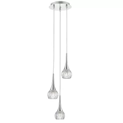 LYALL – with beautiful cut glass style pumpkin shaped glass shades with elegant polished chrome caps arranged in a gentle spiral, this fitting sparkles with light. This fitting is height adjustable on installation and has a maximum drop of 1 meter.