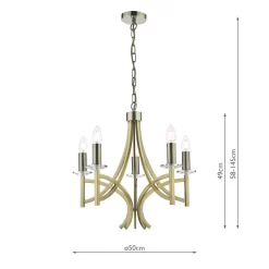 The LYON 5 light antique brass pendant has eight faceted crystal bobeches sitting atop sweeping and intersecting arms to create this modern take on a classical chandelier. A bobeche is a collar originally intended to catch the drips of wax on a candlestick; here they add a touch of authenticity to our contemporary design. The light is also supplied with two sets of candle drips for use with or without shades (shades sold separately) and 1m of chain which is height adjustable on installation.