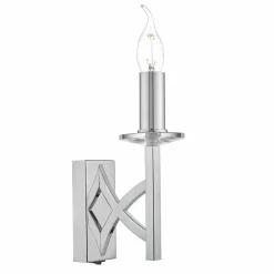 The LYON wall light has a faceted crystal bobeche sitting atop a sweeping and intersecting arm to create this modern take on a classical wall light. A bobeche is a collar originally intended to catch the drips of wax on a candlestick; here they add a touch of authenticity to our contemporary design. The light is also supplied with two sets of candle drips for use with or without shades (shades sold separately) and fitted with a discreetly located rocker switch.