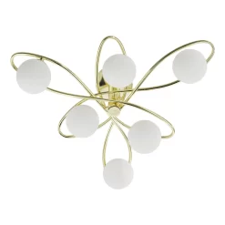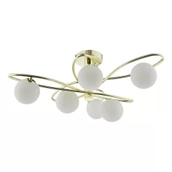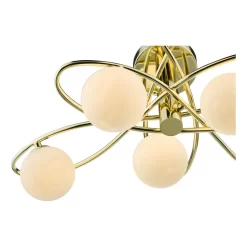 The Lysandra 6 Light Semi-Flush Ceiling Light is a fluid shape semi-flush ceiling lamp with fluid curves of polished gold and opal glass shades. The Lysandra lamp is a semi-flush fitting, suitable for low ceilings. The Lysandra semi-flush is a refined and understated lighting fixture with an air of elegance and style. The Lysandra semi-flush is suitable for an bedroom, dining room, living room or anywhere a little style is needed.