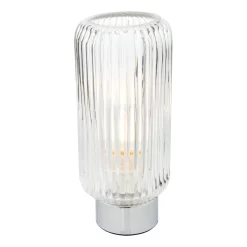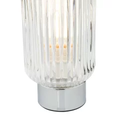 The Mason touch table lamp in ribbed glass and polished chrome. It’s 3 stage touch operated, which makes this an ideal choice for use as bedside light.