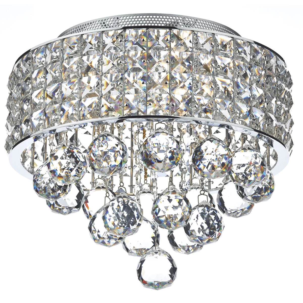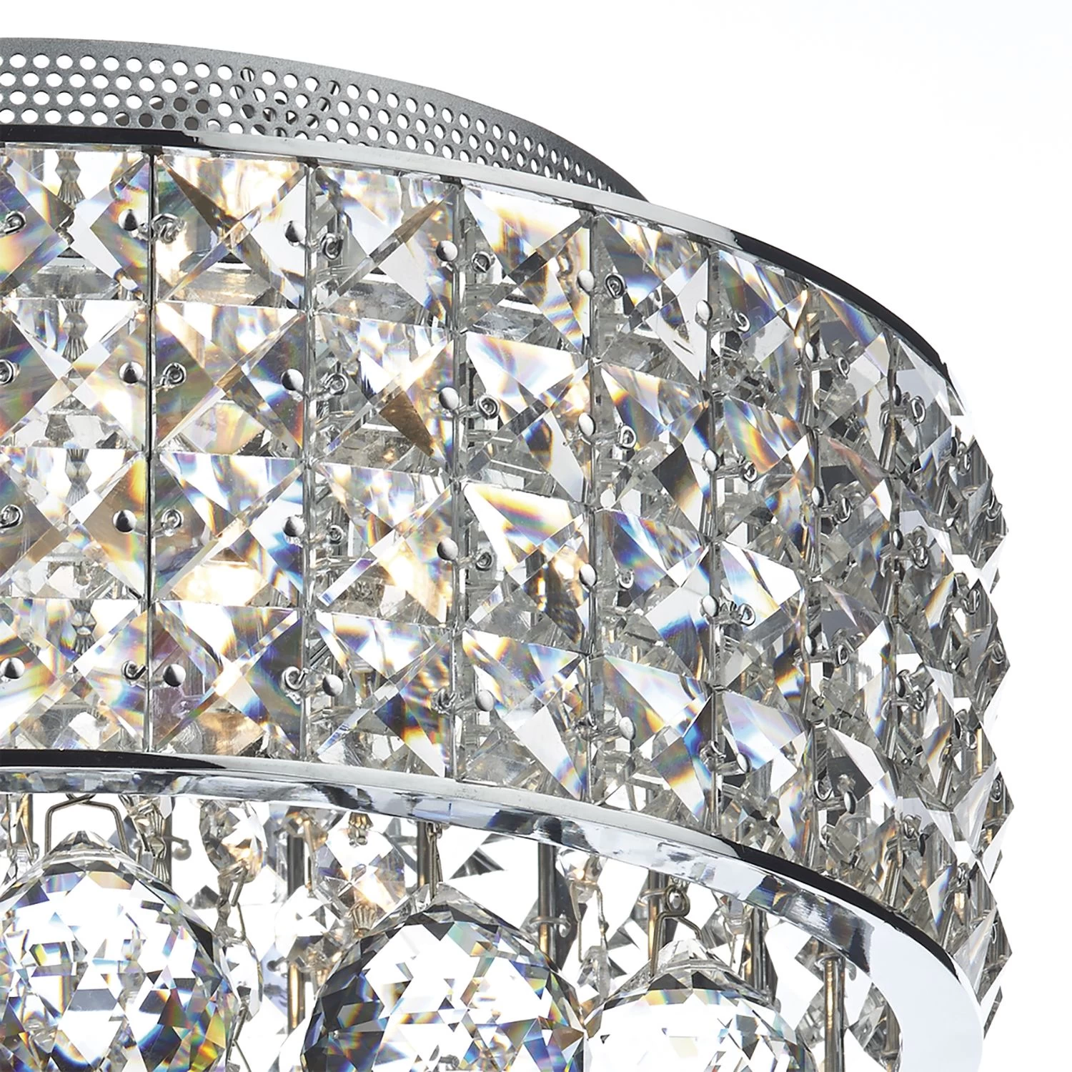 The MATRIX 3lt flush fitting features a circular crystal frame with suspended faceted crystal droppers.