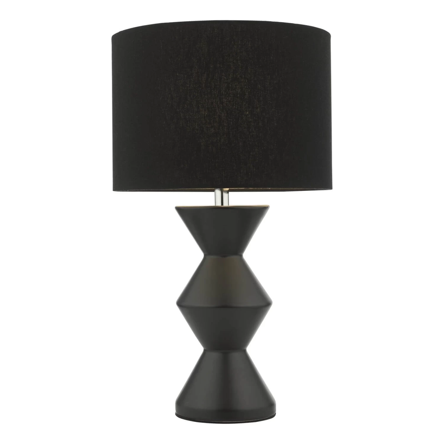 The delightful Max Ceramic Table Lamp is contemporary form of stacked angular bobbins. finished with a black cotton shade. Perfect as a bedside lamp or as an accent lamp in any room.