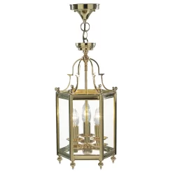 The MOORGATE boasts a row of 3 lamps set within a clear glass panelled, cast polished brass frame.