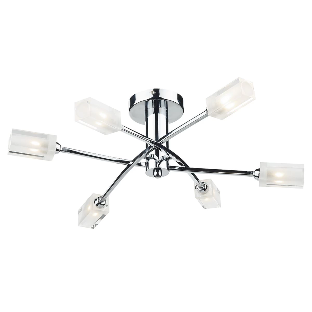 The MORGAN 6lt Semi Flush has clear glass shades with frosted inner detail and a polished chrome frame.