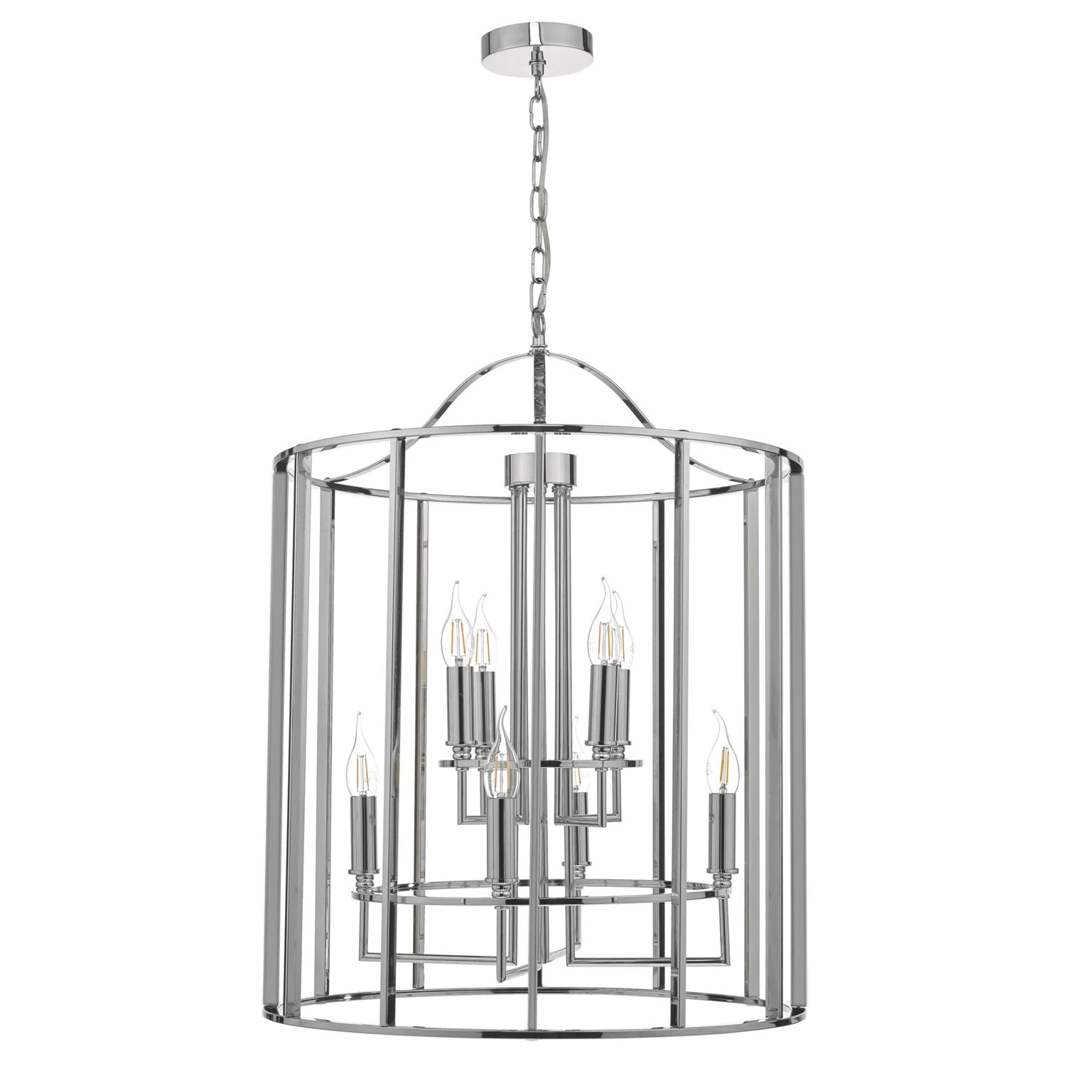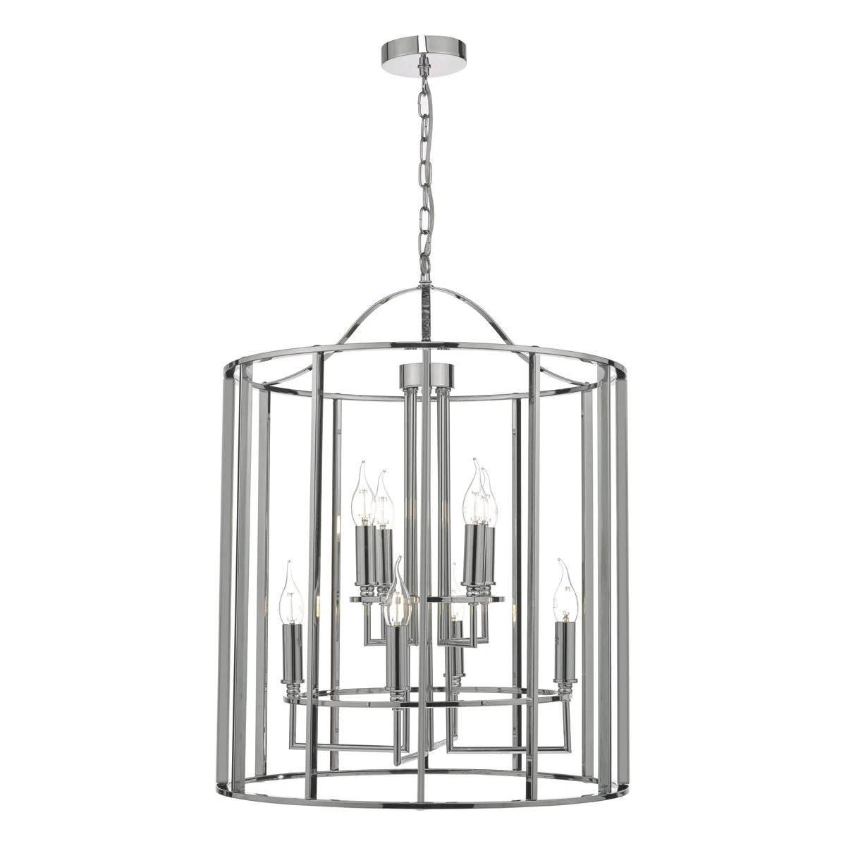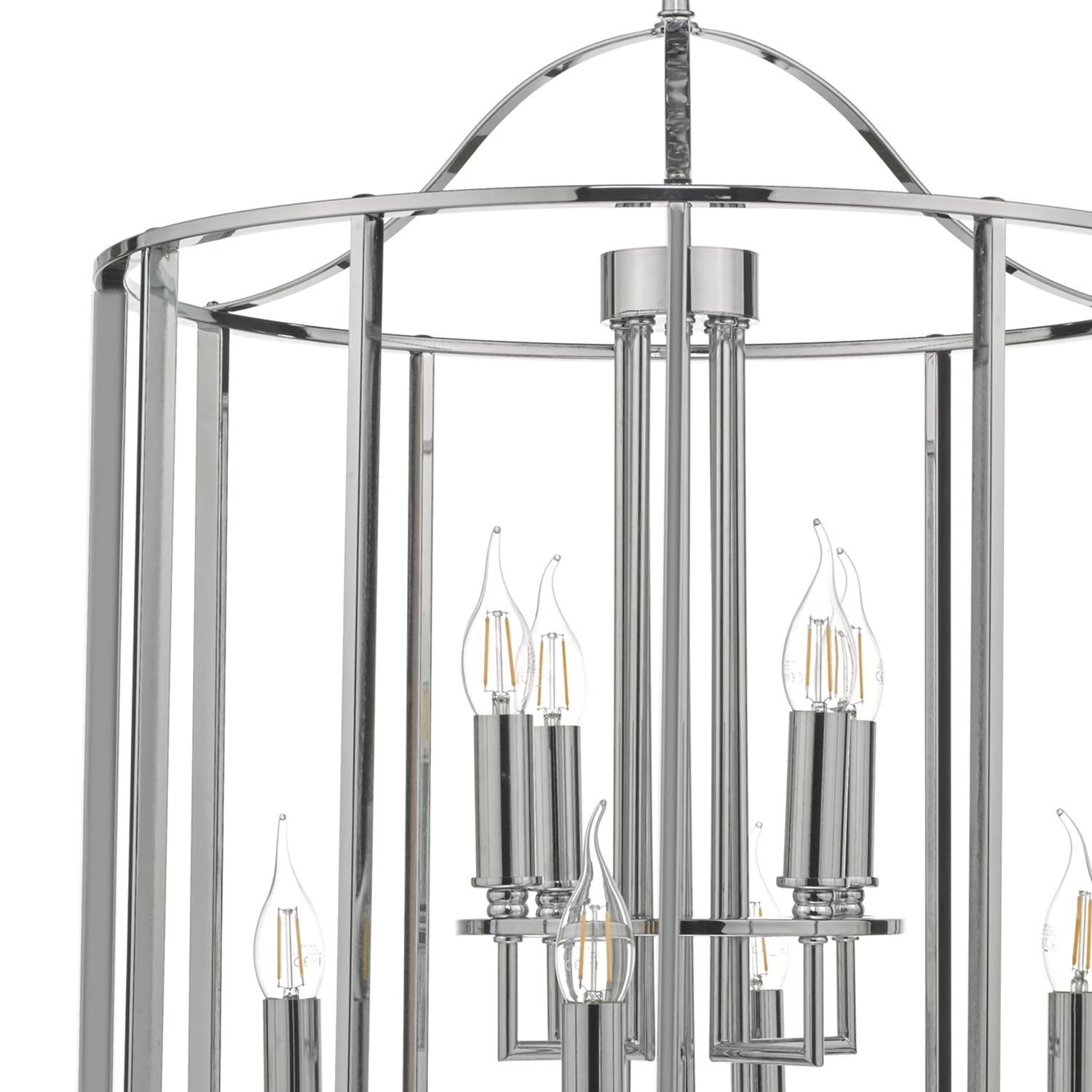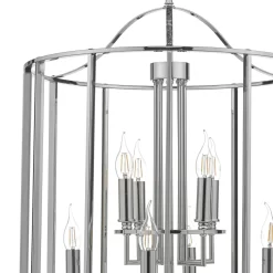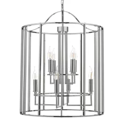 The statement Myka features an angular pyramid of eight lights that are surrounded by an oversized lantern cage.