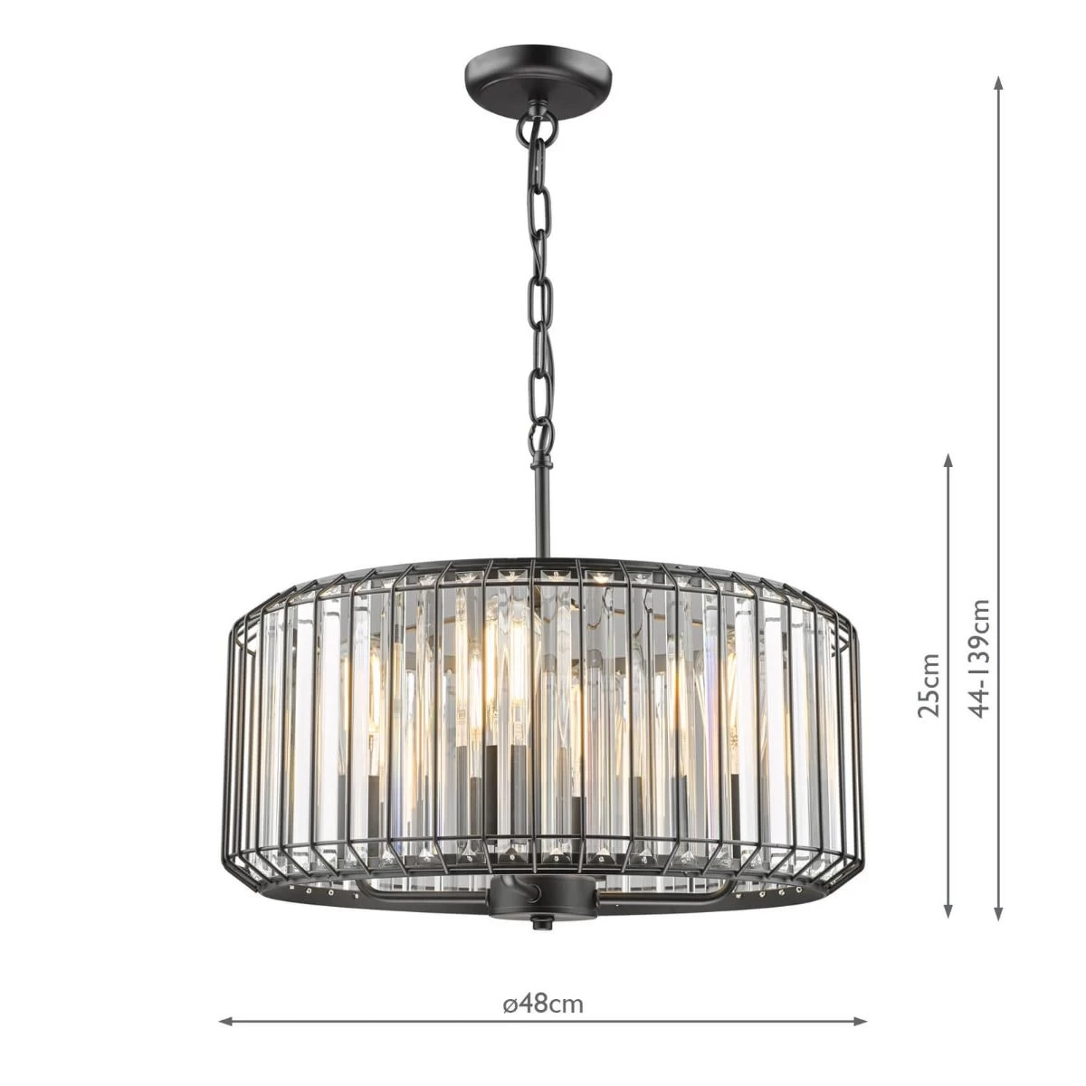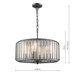 The Naeva 4 light pendant features a contemporary satin black cage surrounding stunning faceted crystal. This blend of black and crystal makes it a great choice where other black accents are already present in your design scheme, such as Crittal black framed windows. The Naeva 4 light pendant is perfect for living rooms, bedrooms or dining rooms.
