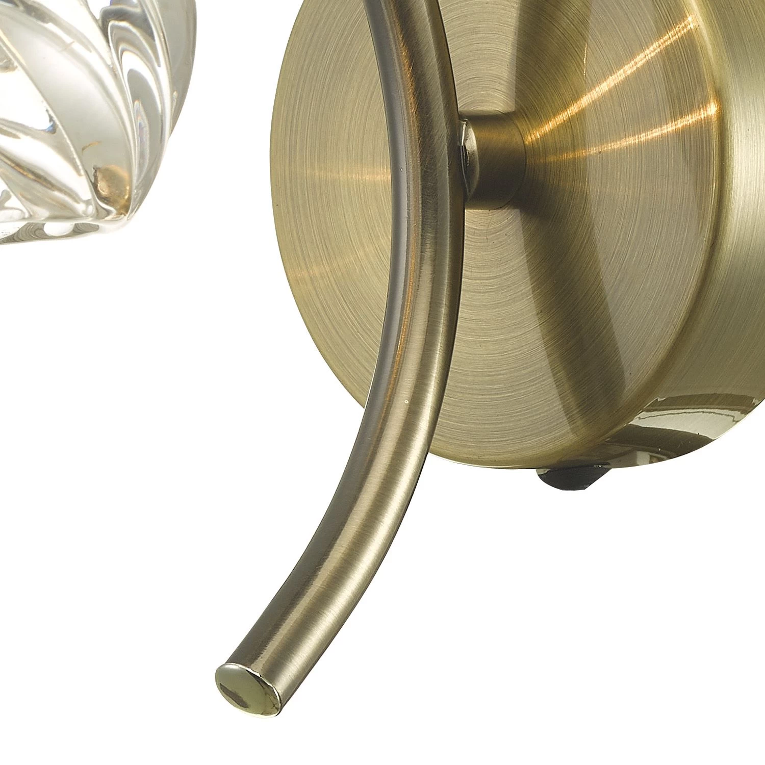 The Nakita single wall light in antique brass and clear glass shade. The heavy glass pressed glass shade of the Nakita single wall light has a twisted pattern that flows with the arms and gives an interesting and beautiful lighting effect when on and still glistens in ambient light when off. The antique brass finish is gaining popularity again in modern interiors but always has a timeless look in more period properties. The pull cord switch means you can switch it independently to the other lights in your room without the expense of adding extra wall switches. If you already have an extra wall switch don’t worry you can easily set the switch to ‘on’ and remove the cord.
