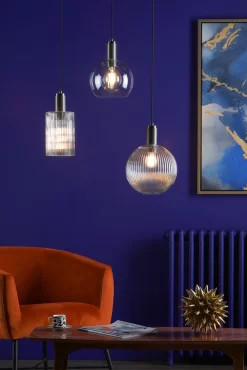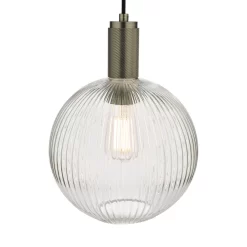 The Nikolas single pendant is a perfect example of the refined industrial style, inspired by industrial lighting using a rich pallet of materials and finishes. Featuring a wonderfully heavy machined lamp holder with a contemporary single knurling and an antique chrome finish. Finished with a ribbed globe glass shade.