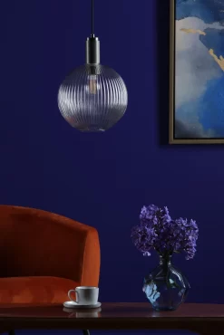 With a black cable, the Nikolas single pendant is height adjustable on installation.