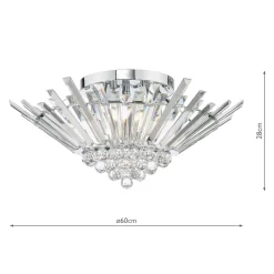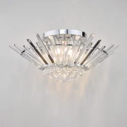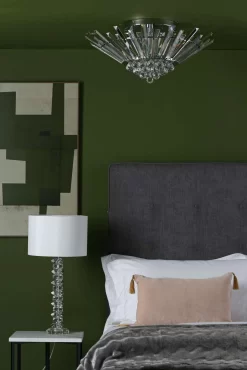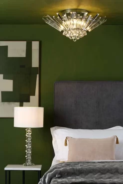 This stunning Nimbus flush light is inspired by art deco ballerina rings of the 1920s. The staggered coffin crystals form a halo around a centre of faceted crystal droppers. The light is more like a grand chandelier for your ceiling, allowing the glamour of a chandelier where ceiling heights don’t allow.