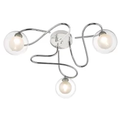 Curved polished chrome arms weave around glass shades in the charming Nondus semi-flush light, creating a stylish accent in any interior.