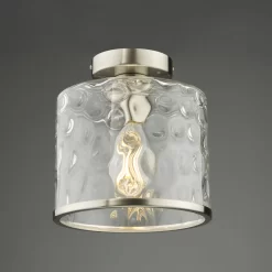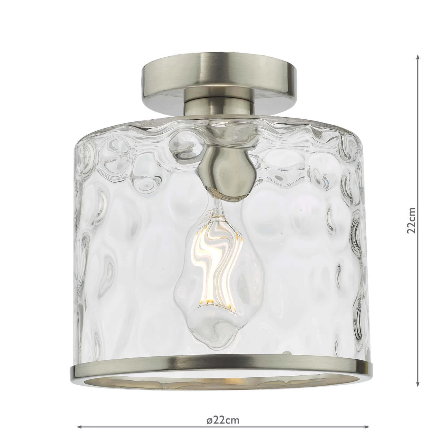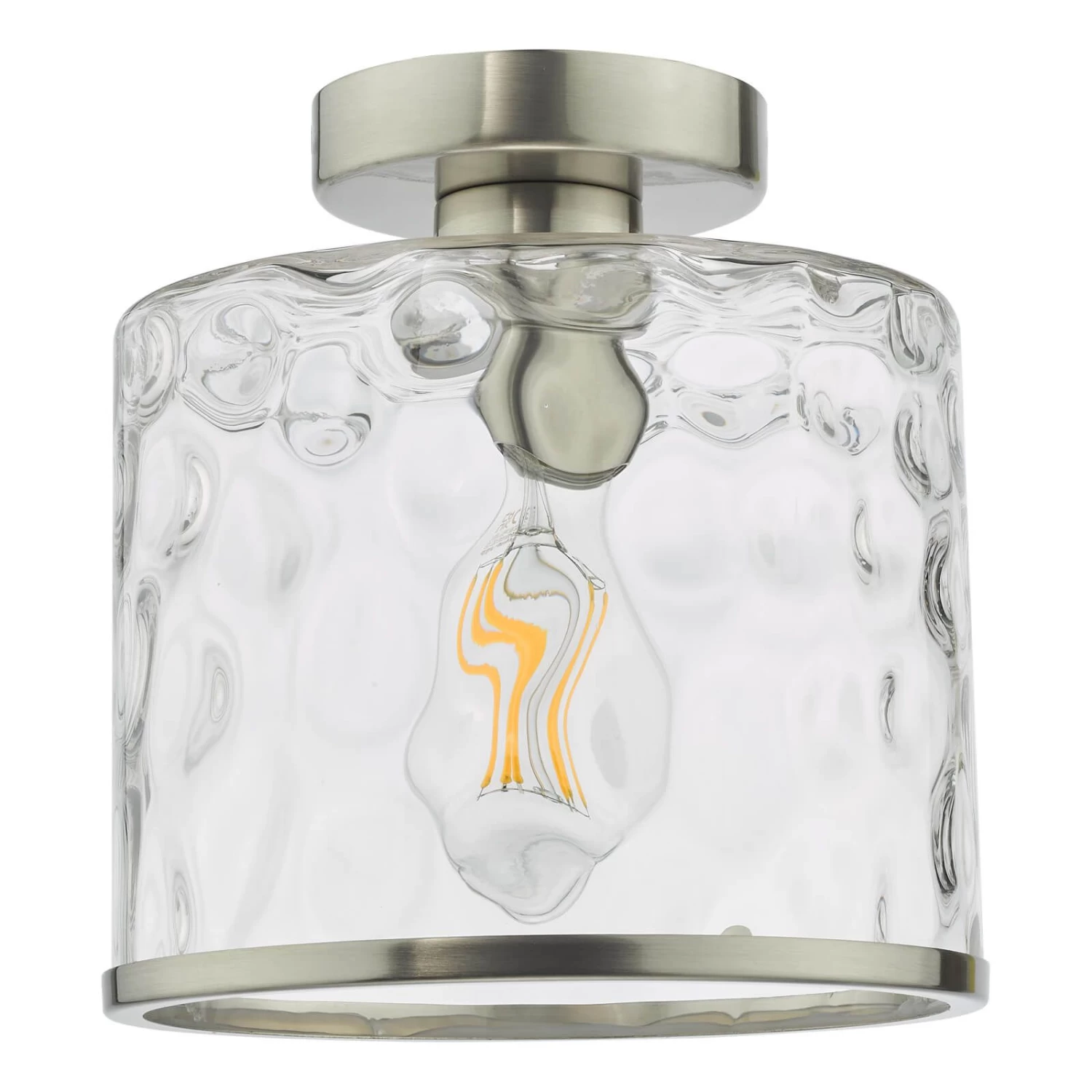 The Olsen Semi-Flush Satin Chrome and Glass is a beautiful semi-flush fitting with a natural looking dimple glass shade and matching metal trim. The Olsen semi-flush is suitable for an entryway, dining room or anywhere a little style is needed.