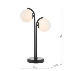 The Orlena 2 Light Table Lamp Matt Black and Opal Glass is a beautiful yet minimalist table lamp with subtle curved ends. The Orlena lamp features a matte black base and opal glass shades with a black cable. The Orlena lamp is part of a collection of simple yet stylish lamps that complement any decor. The Orlena 2 light table lamp takes 2 G9 bulbs (not supplied), We recommend using LED bulbs from our range of LED bulbs