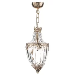 The OTTOMAN 1lt Pendant has decorative French gold finish filigree metal work on a beautifully-shaped fluted glass pendant.