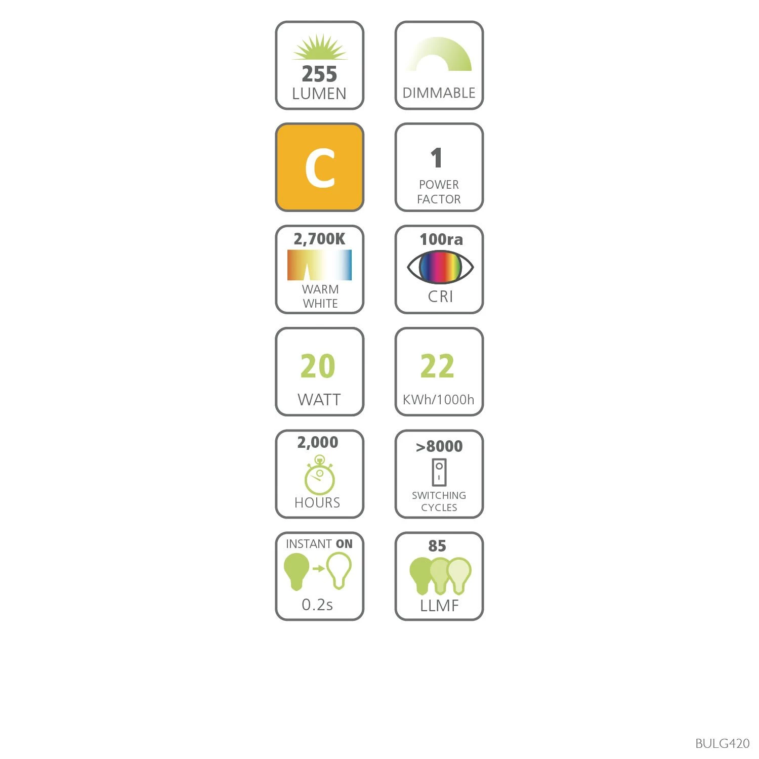 Pack of 10, Dimmable Halogen G4 Light Bulb (Lamp); 12V; 20W; 374LM; 2700K Warm White