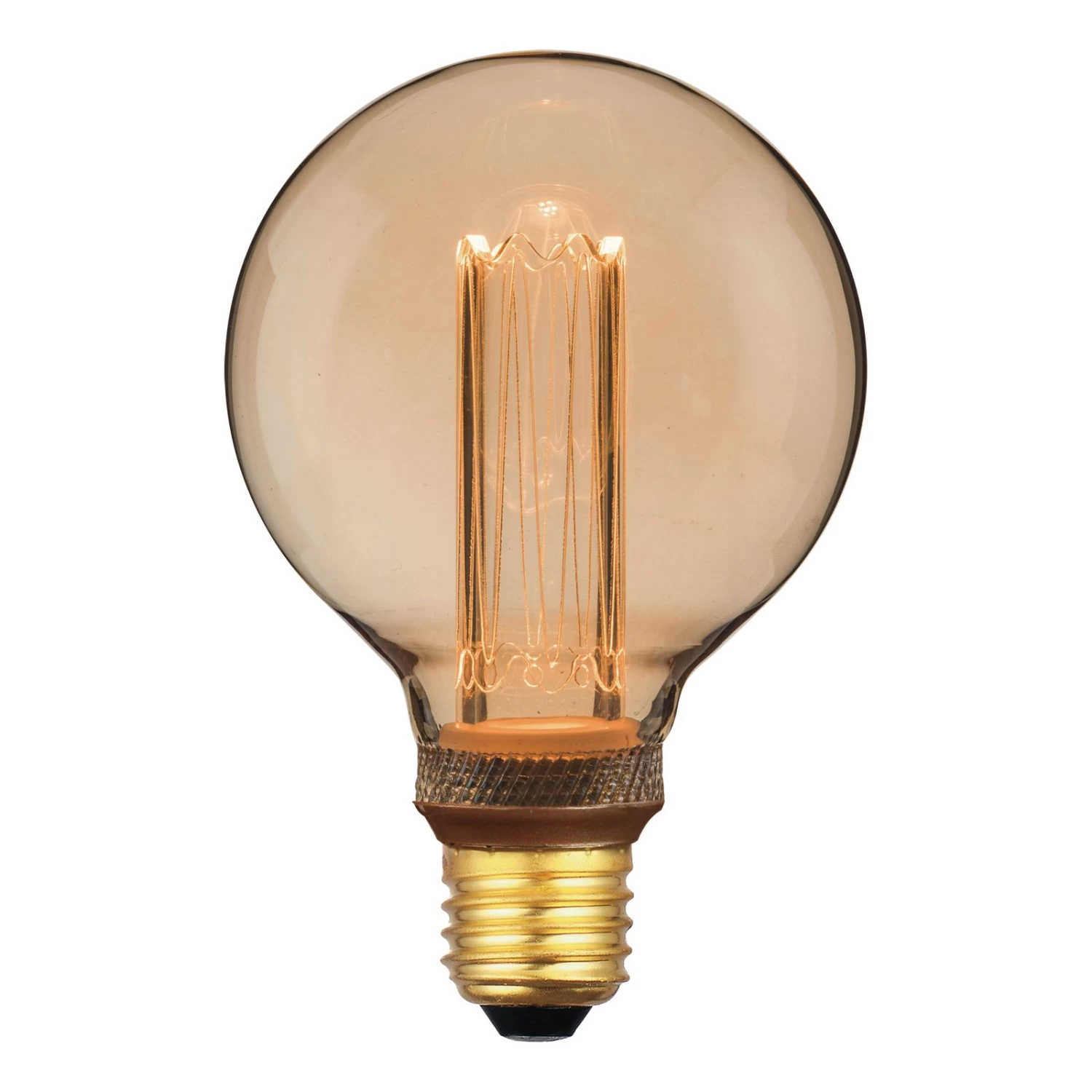 Pack of 5, Dimmable LED Vintage Medium Globe Light Bulb (Lamp) ES/E27; 3.5W; 120 Lumens; 1800K Very Warm White; Amber Glass