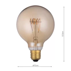 Pack of 5, Dimmable LED Vintage Medium Globe Light Bulb (Lamp) ES/E27; 4W; 200 Lumens; 1800K Very Warm White; Amber Glass