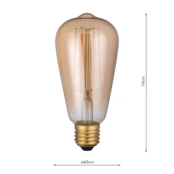 Pack of 5, Dimmable LED Vintage Rustika Light Bulb (Lamp); 4W; 3000LM; 1800K Very Warm White, Amber Glass