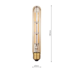 Pack of 5, Dimmable LED Vintage Medium Tube Light Bulb (Lamp) ES/E27; 6W; 360 Lumens; 1800K Very Warm White; Amber Glass