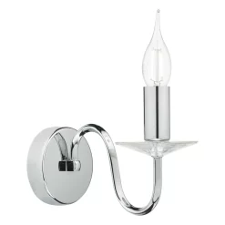 The contemporary PIQUE wall light features a graceful curved polished chrome arm, gleaming glass scone and a pull cord switch. This wall light looks great with a decorative lamp but also can be used with a shade to add a splash of colour or tie into any décor styling.