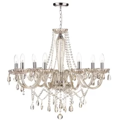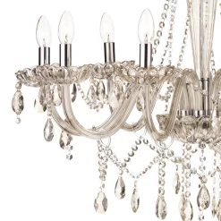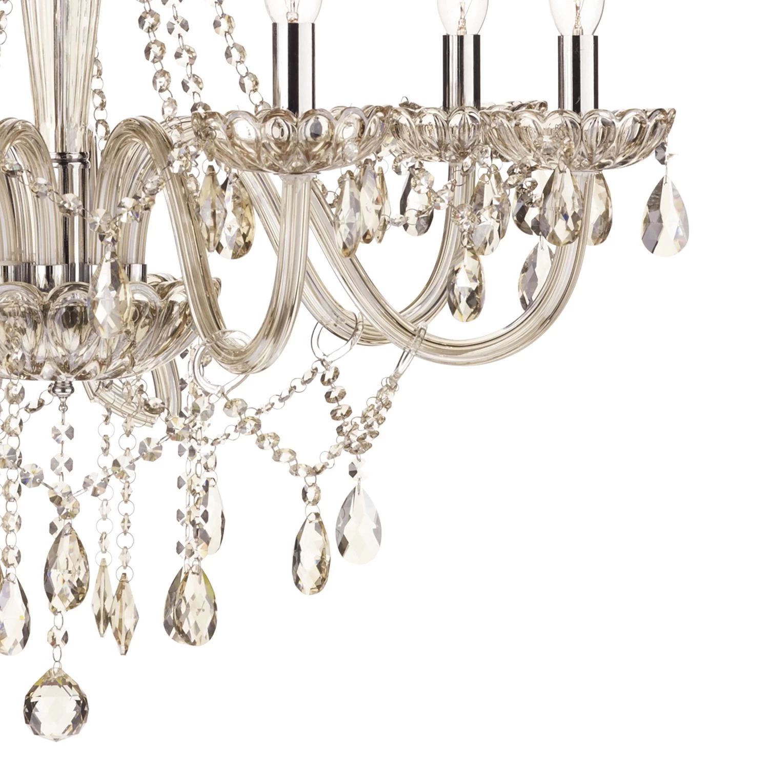 The fitting features champagne coloured glass and crystal glass draping beads and faceted drops.