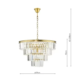 With four stepped tiers of bevelled crystals suspended from a bronze frame, the Rhapsody chandelier combines luxury materials with grand proportions to create a real statement wherever it is placed. Supplied with 2 metres of cable and matching bronze chain, Rhapsody can be adjusted from just under 60cm to just over 2.5 metres, making it as versatile as it is captivating. The Rhapsody chandelier takes 6 E14 bulbs, and for optimal energy efficiency and lighting quality, we recommend using our LED bulbs.