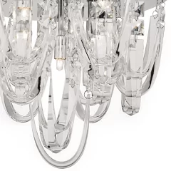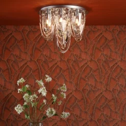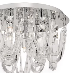 The breath-taking Roxanne flush ceiling fitting from dar Lighting features large pieces of highly polished crystal suspended in a swag effect around the 7 lights to create a beautiful effect. With a mirror polished chrome ceiling plate, lights and crystals are reflected to produce maximum sparkle and light, creating joy in your home.